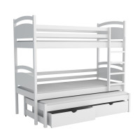 Detská poschodová posteľ z masívu borovice OLÍVIE s prístelkou a šuplíky - 200x80 cm - BIELA