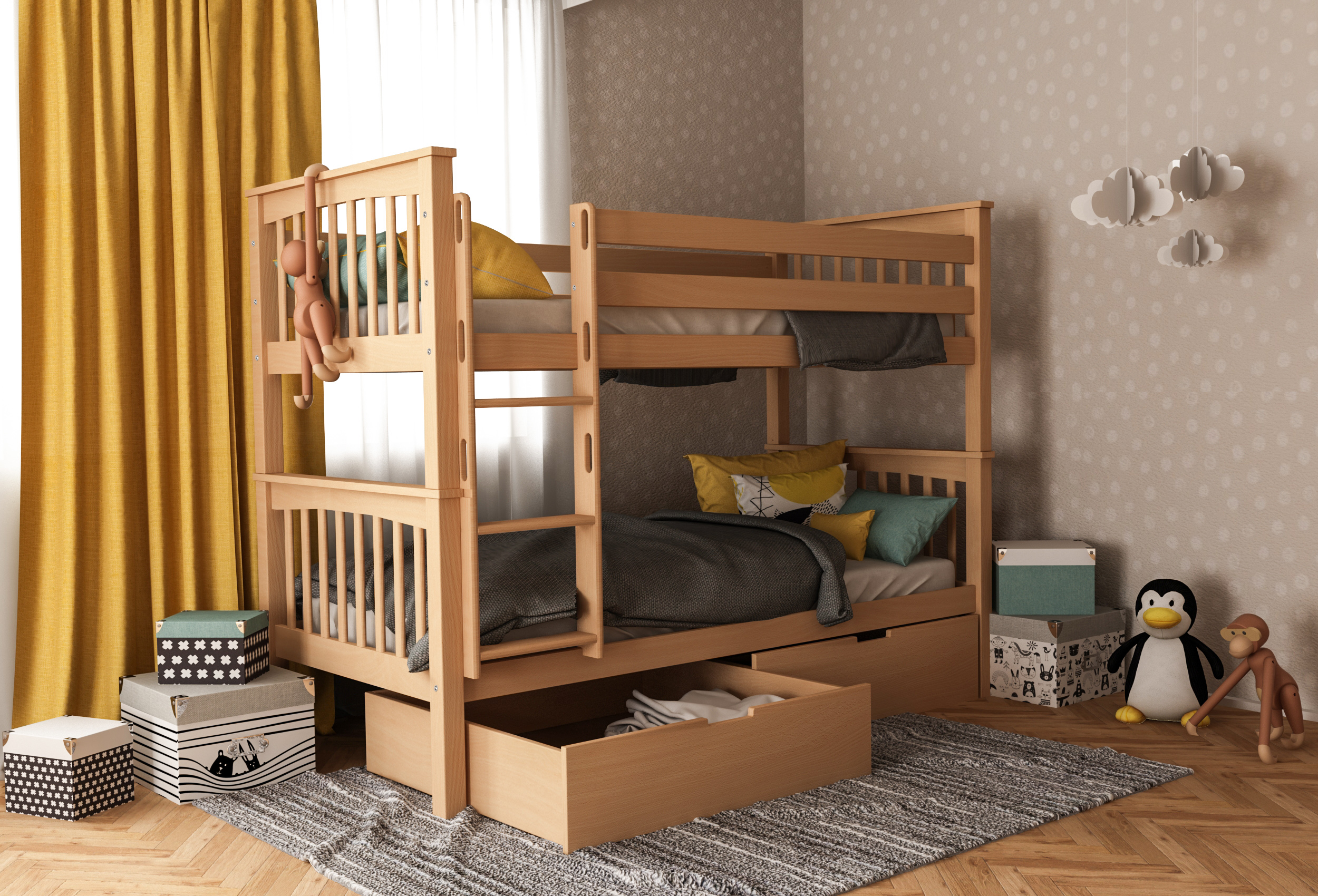 Detská poschodová posteľ z MASÍVU BUK - DAVID 200x90cm - prírodná