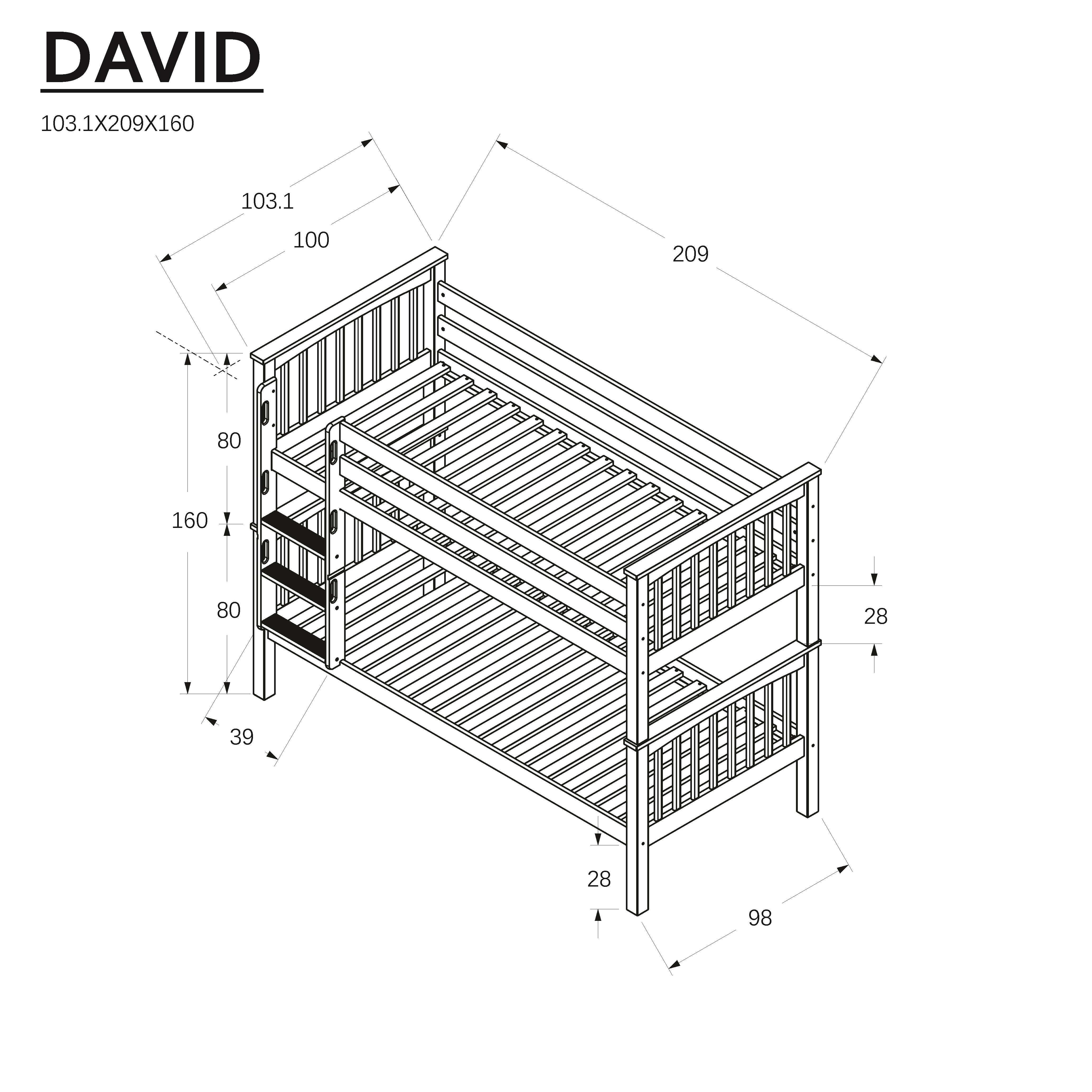 - Rozmery postele [DxŠxV]: 209x103,5x160 cm