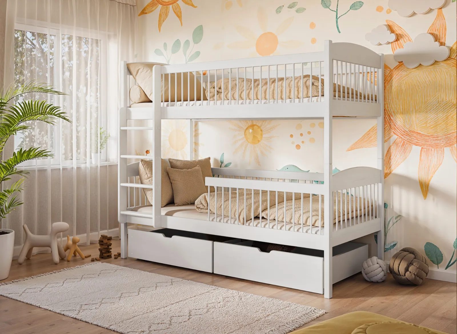 Detská poschodová posteľ z masívu so šuplíkmi ILONA - 200x90 cm - BIELA