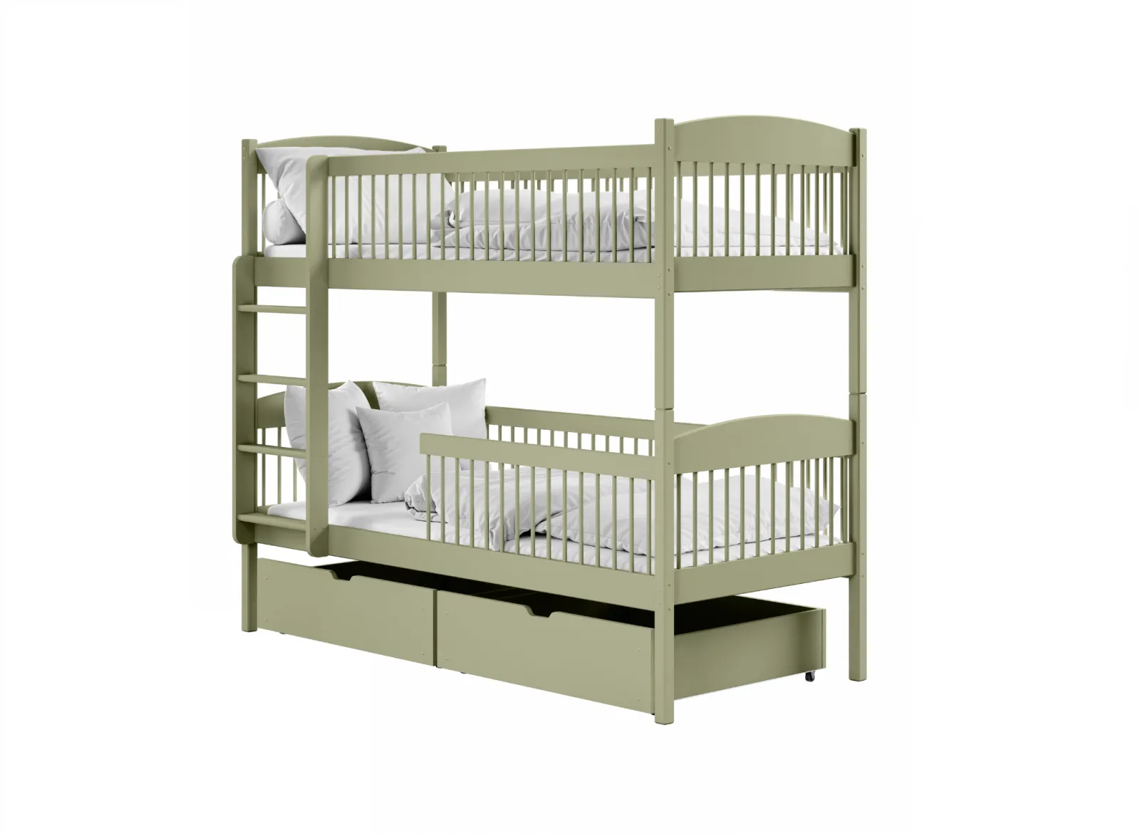 Detská poschodová posteľ z masívu so šuplíkmi ILONA - 200x90 cm - OLIVOVO ZELENÁ
