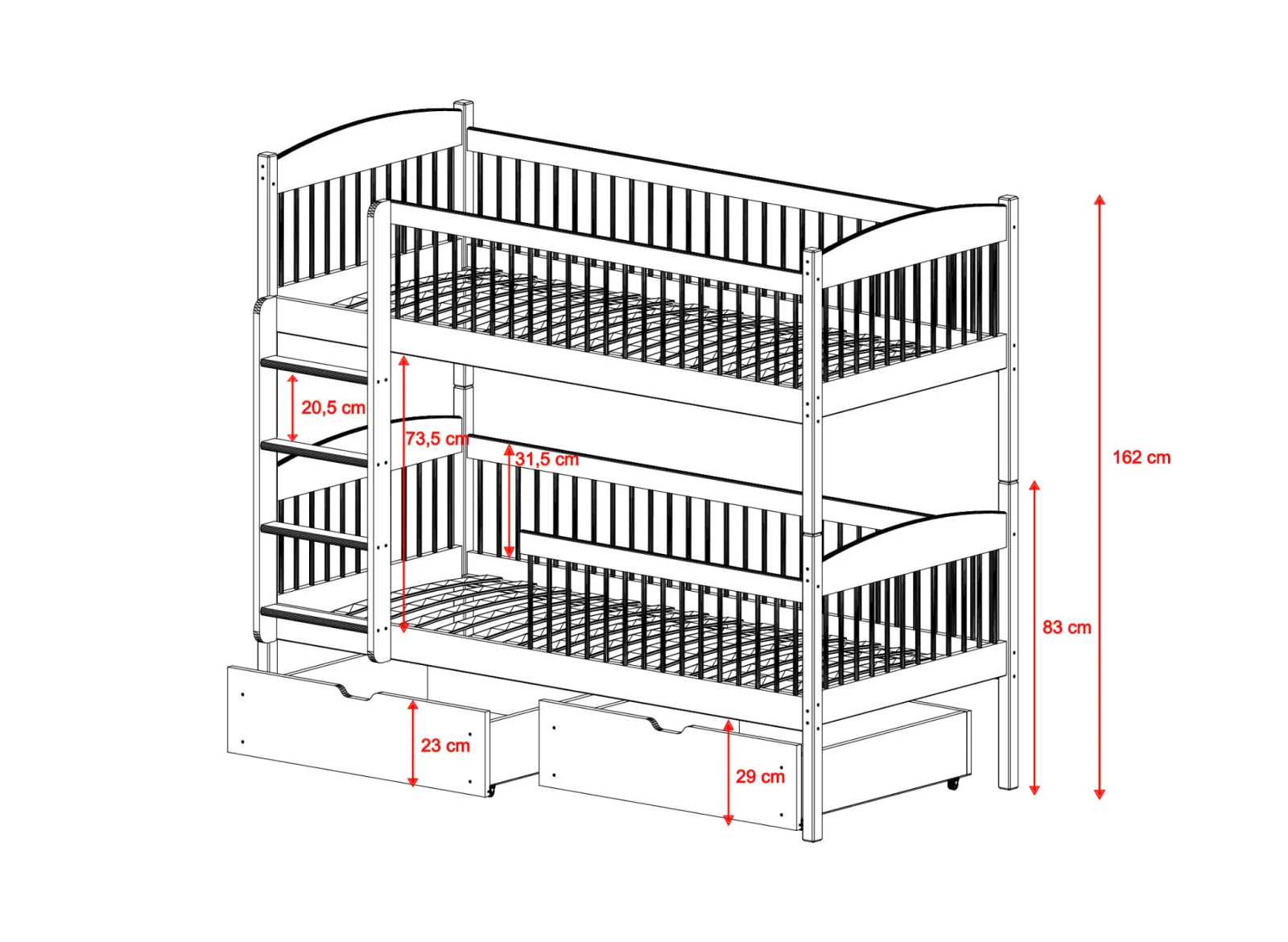 - Celková výška postele: 162 cm