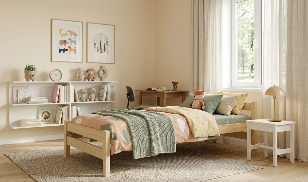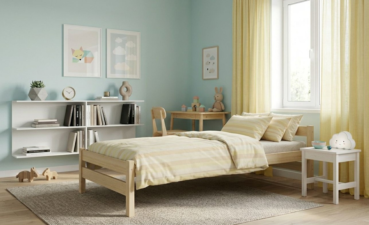 Detská posteľ ALEXANDR sa vyznačuje jednoduchým dizajnom a konštrukciou, ktoré sa budú hodiť do moderných škandinávskych aj klasických interiérov. Posteľ je vyrobená z masívneho borovicového dreva bez povrchových úprav , čo ponúka prirodzený vzhľad. Posteľ je ekologická, odolná a dá sa ľahko prispôsobiť - jej vzhľad môžete upraviť morením, lakovaním alebo maľovaním podľa vlastného uváženia. Prírodný, neupravený povrch umožňuje nábytku dýchať a je tiež ideálny do detských izieb a izieb pre alergikov. Posteľ kombinuje funkčnosť, odolnosť a estetiku a vytvára príjemný priestor na spánok a odpočinok. Súčasťou postele je aj pevný a odolný flex rošt vyrobený z brezových lamiel.