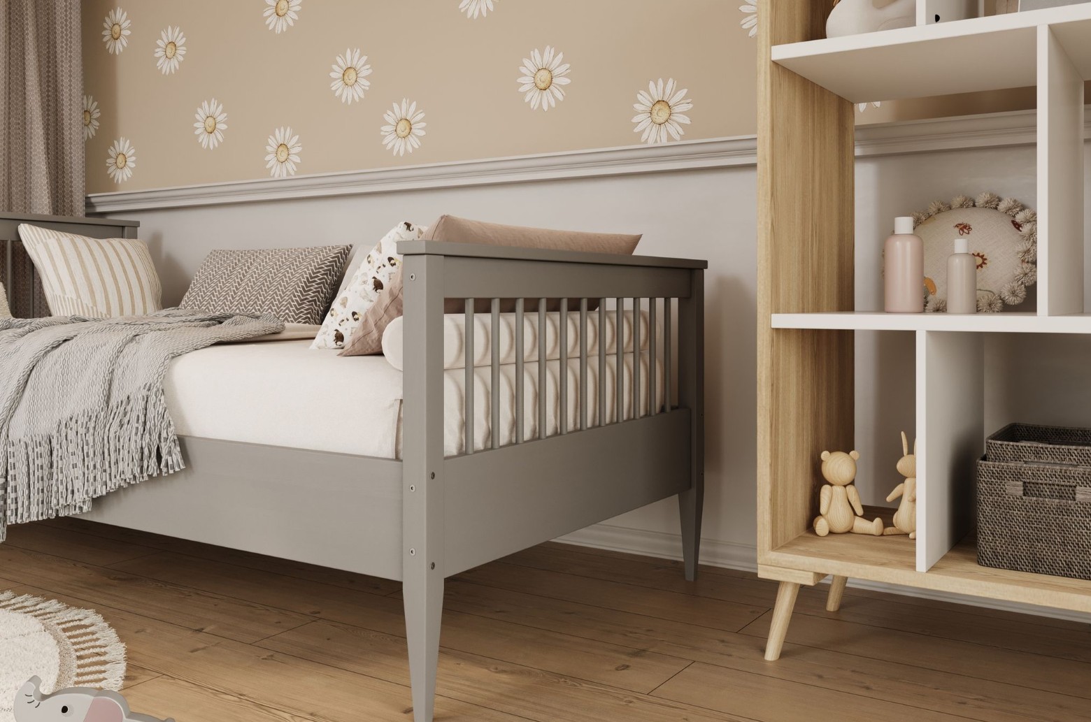 K posteli od nás dostanete lamelový rošt z masívneho dreva aj odnímateľnú zábranu ZADARMO!