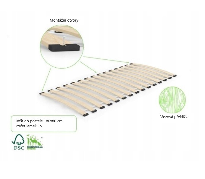 Počet lamiel sa líši v závislosti od rozmeru postele. Lamely sú tvarované do oblúka, čo zvyšuje pohodlie pri spánku. Lamelové dosky sú spojené vysoko pevnými syntetickými pásmi.