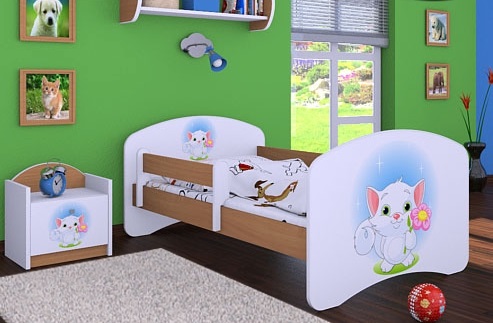 Detská posteľ bez šuplíka 200x90 cm MAČIČKA S KYTIČKOU + matrac zadarmo