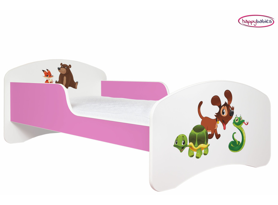 Detské postele ANIMALS s najobľúbenejšími zvieracími vzormi spoľahlivo rozžiari izbičky chalanov aj dievčatiek. Z našej širokej ponuky pestrých veselých motívov si iste vyberiete a vytvoríte tak vášmu dieťaťu izbičku snov, kde bude radosť učiť sa, hrať sa aj spať. Postele sú vyrobené z vysoko kvalitnej nábytkovej lamino dosky so zaoblenými hranami, aby bolo dieťa chránené pred zranením. Z oboch strán lôžka sú pevné zábrany, ktoré chránia vaše dieťa pred prípadným pádom z postele. Na čelách postele je krásny farebná potlač, ktorý sa vášmu dieťaťu určite zapáči. K tlačeniu obrázkov boli použité ekologické farby, spĺňajúci najprísnejšie zdravotne bezpečnostné normy. Štandardne k posteli dodávame lamelový rošt a penovou matrac so snímateľným prateľným poťahom ZADARMO!