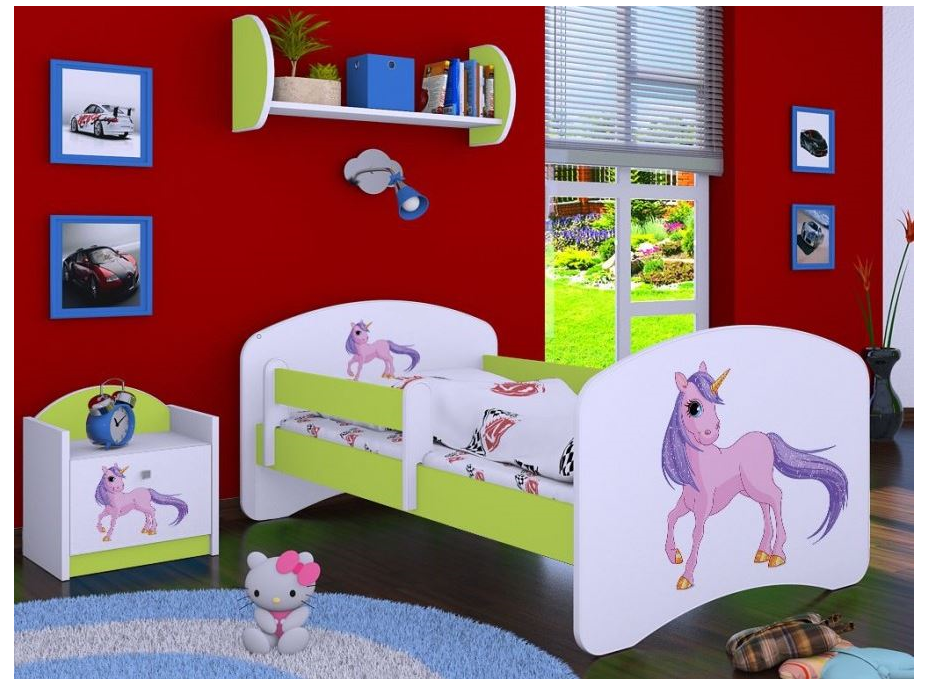 Detská posteľ bez šuplíku 160x80cm Jednorožec - zelená