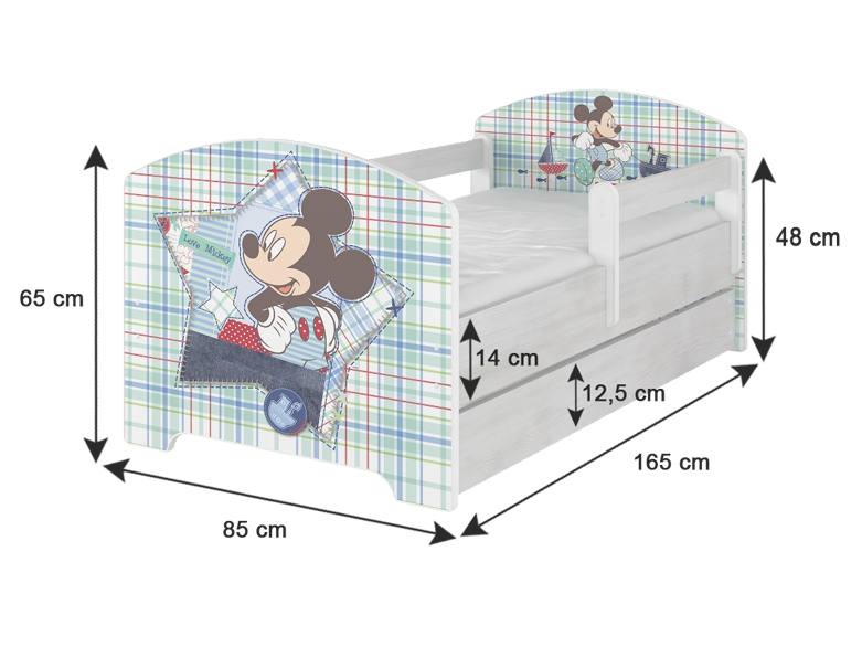 Detská posteľ Disney je vyrobená z kvalitných MDF dosiek vo farbe nórskej borovice. Hrany sú zaoblené, takže sa nemusíte báť o bezpečnosť Vášho dieťaťa. Tlač má pekné sýte farby, ktoré sú zabezpečené špeciálnym laminátom s ochranou proti oderu. Nosnosť postele je 100 kg.