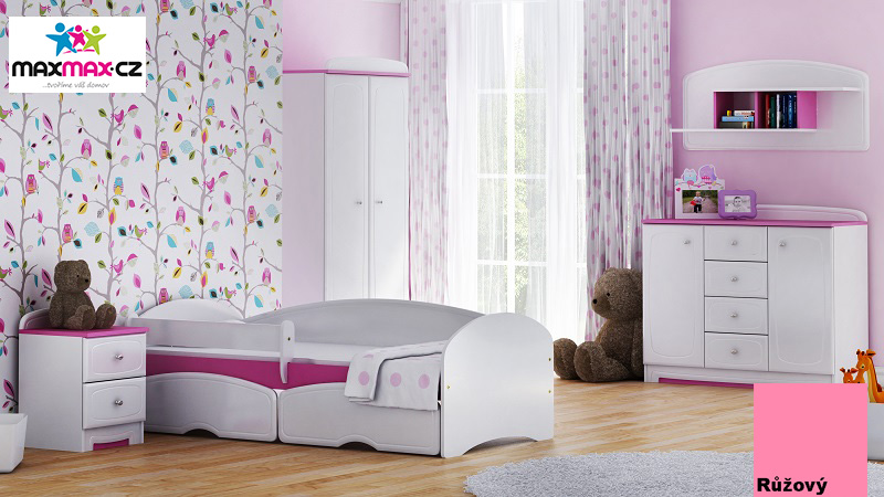 Súčasťou postele je aj zábrana, ktorá zabráni pádu dieťaťa z postele.