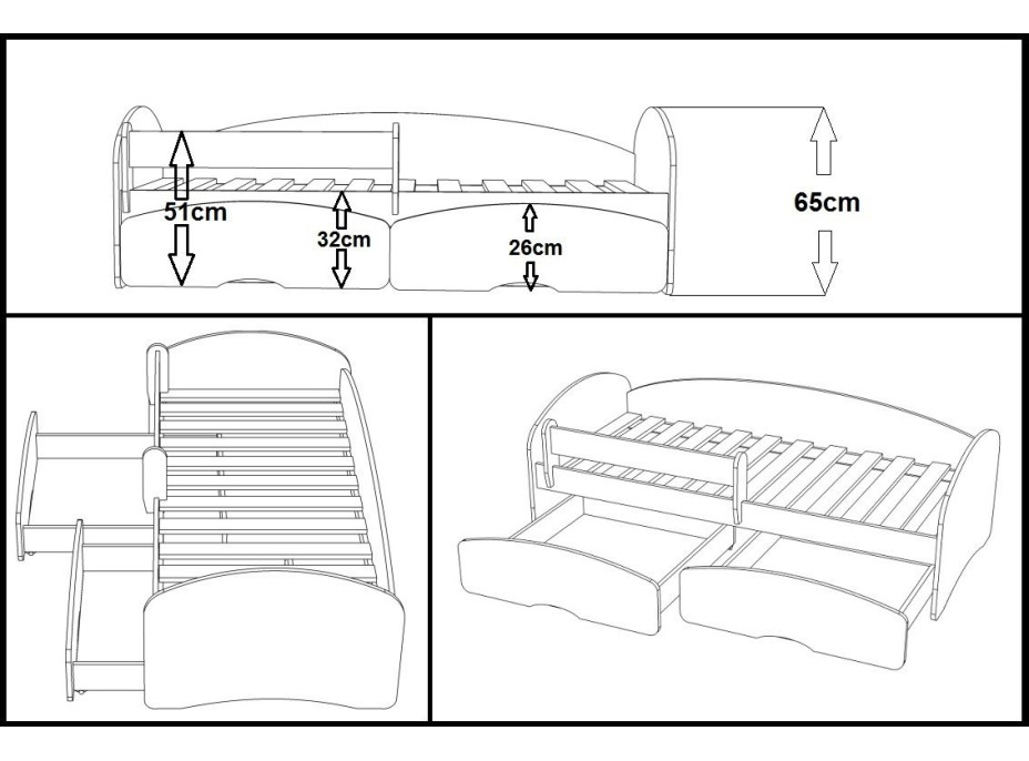 Tovar je dodávané vrátane zásuvky v demonte. Maximálna nosnosť postele je 90 kg.