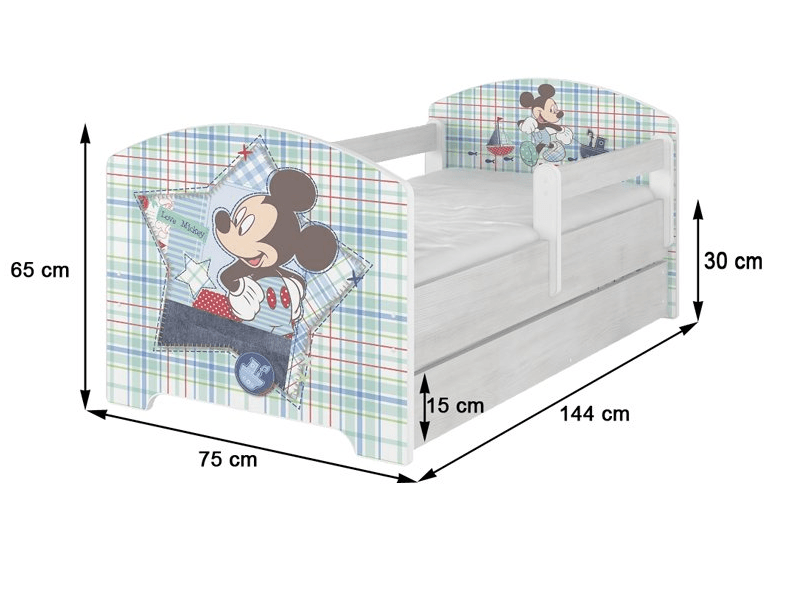 Detská posteľ Disney je vyrobená z kvalitných MDF dosiek. Hrany sú zaoblené, takže sa nemusíte báť o bezpečnosť Vášho dieťaťa. Tlač má pekné sýte farby, ktoré sú zaistené špeciálnym laminátom s ochranou proti oderu. Nosnosť postele je 100 kg.