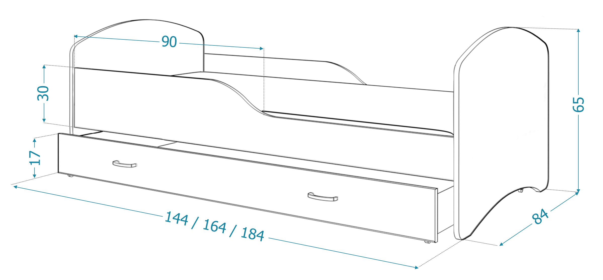 Detská posteľ so zásuvkou je dostupná v mnohých farebných variantoch a vzoroch. Vy tak budete mať možnosť zladiť posteľ skvele s detskou izbou a priviesť interiér k dokonalosti. Vaše deti si túto posteľ zamilujú!