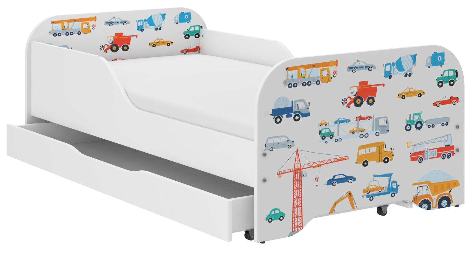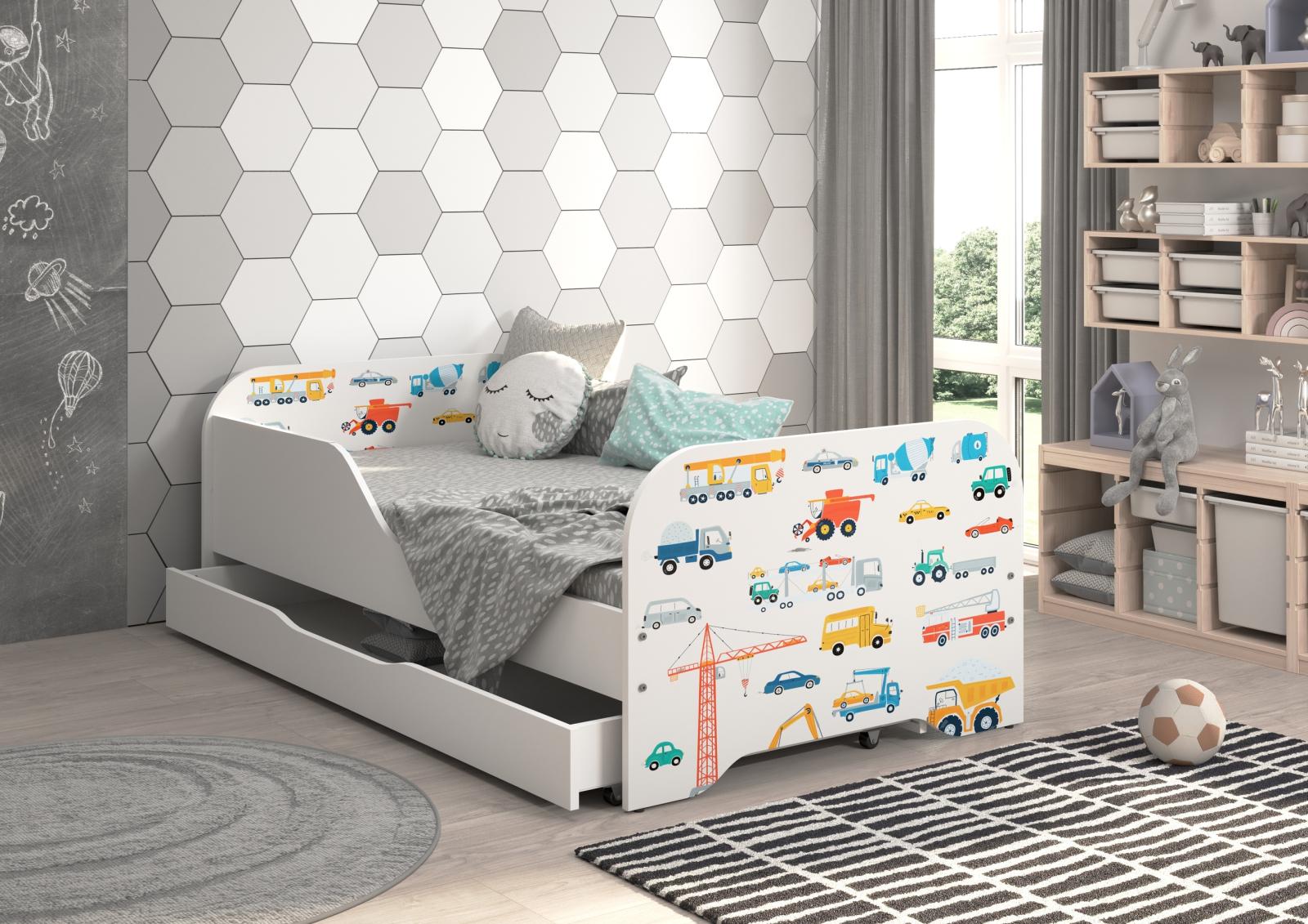 Detská posteľ KIM - DOPRAVNÉ PROSTRIEDKY 140x70 cm + MATRAC