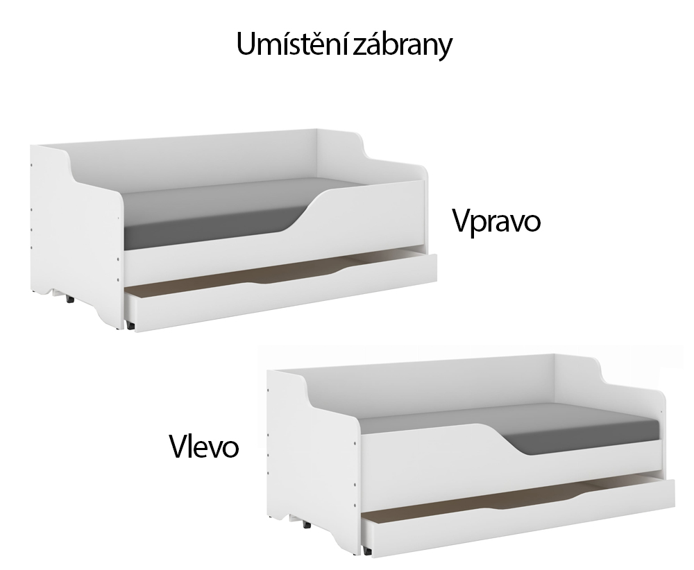 Detská posteľ z kolekcie LOLA na prvý pohľad zaujme moderným tvarom, ktorý si každé dieťa ihneď zamiluje. Vďaka svojim tvarom a vzorom sa hodí do každej detskej izby, kde ponúkne pohodlné obklopené spanie alebo využitie ako pohovku. Detské postele z našej ponuky sú vďaka použitým kvalitným materiálom veľmi odolné a pevné. Na bezpečnosť sa kladú veľké nároky a tak je posteľ v prevedení bez ostrých rohov a s vyvýšenou časťou bočnice , ktorá funguje ako bezpečnostná zábrana proti vypadnutiu z postele počas spánku. Odolnosť je zaistená vďaka pevnej konštrukcii z 18mm laminátových dosiek s PVC ochranou namáhaných hrán. Pod posteľou nájdete priestrannú zásuvku na 4 kolieskach, do ktorej schováte nielen posteľnú bielizeň, ale pokojne aj menšie hračky.
