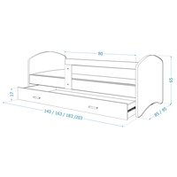 Detská posteľ so zásuvkou je dostupná v mnohých farebných variantoch a vzoroch. Vy tak budete mať možnosť zladiť posteľ skvele s detskou izbou a priviesť interiér k dokonalosti. Vaše deti si túto posteľ zamilujú!