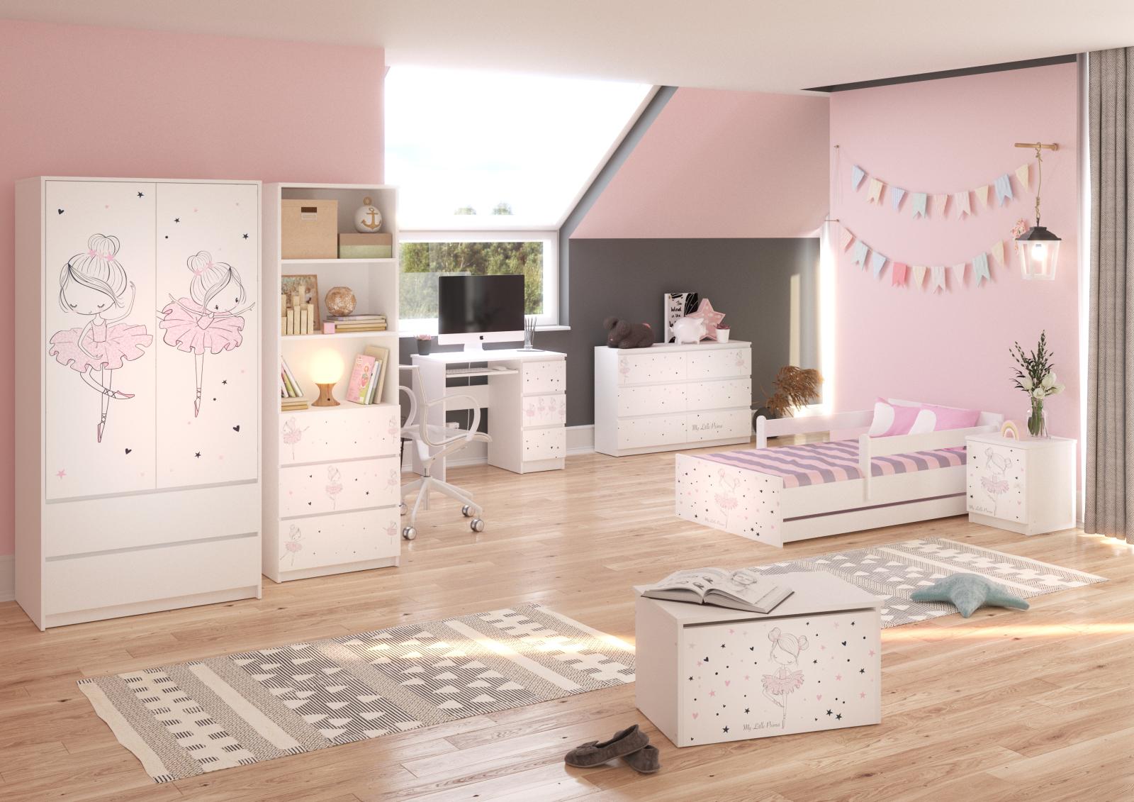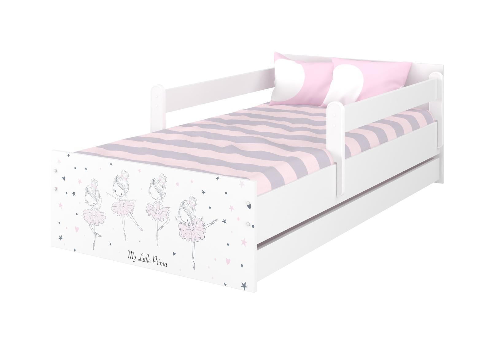 Detská posteľ MAX 160x80 cm RUŽOVÁ BALETKA - biela, so šuplíkom, 1x dlhá + 1x krátka zábrana