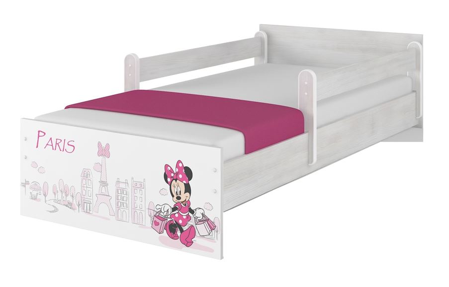 Detská posteľ MAX bez šuplíka Disney - MINNIE PARIS 180x90 cm NÓRSKA BOROVICA - 2x krátka zábrana