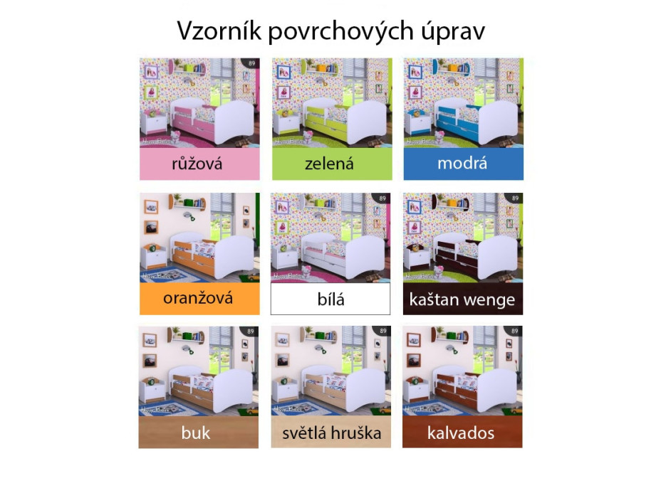 Detské postele tvorí základ každej detskej izbičky. Ponúkame vám detskú posteľ pre dve deti z vysoko kvalitnej lamino dosky. Na čelách postele je krásny farebná potlač, ktorý sa vášmu dieťaťu určite zapáči. K tlačeniu obrázkov boli použité ekologické farby, ktoré sú naviac fixované laminátovým profilom, a to preto, aby nedochádzalo k opotrebovaniu a vyblednutiu farieb. Okraje postieľky sú bez ostrých hrán. Dlhá zábrana na boku postele chráni dieťa pred pádom na zem počas spánku. Zábranu možno pripevniť na pravú aj ľavú stranu postele. Pod spodným lôžkom je naviac tiež úložný priestor. K posteli si možno objednať aj krátku zábranu s celkovou dĺžkou 82 cm. Precízne spracovanie a kvalita použitých materiálov zaisťuje, že každá detská posteľ je veľmi odolná a kvalitné.