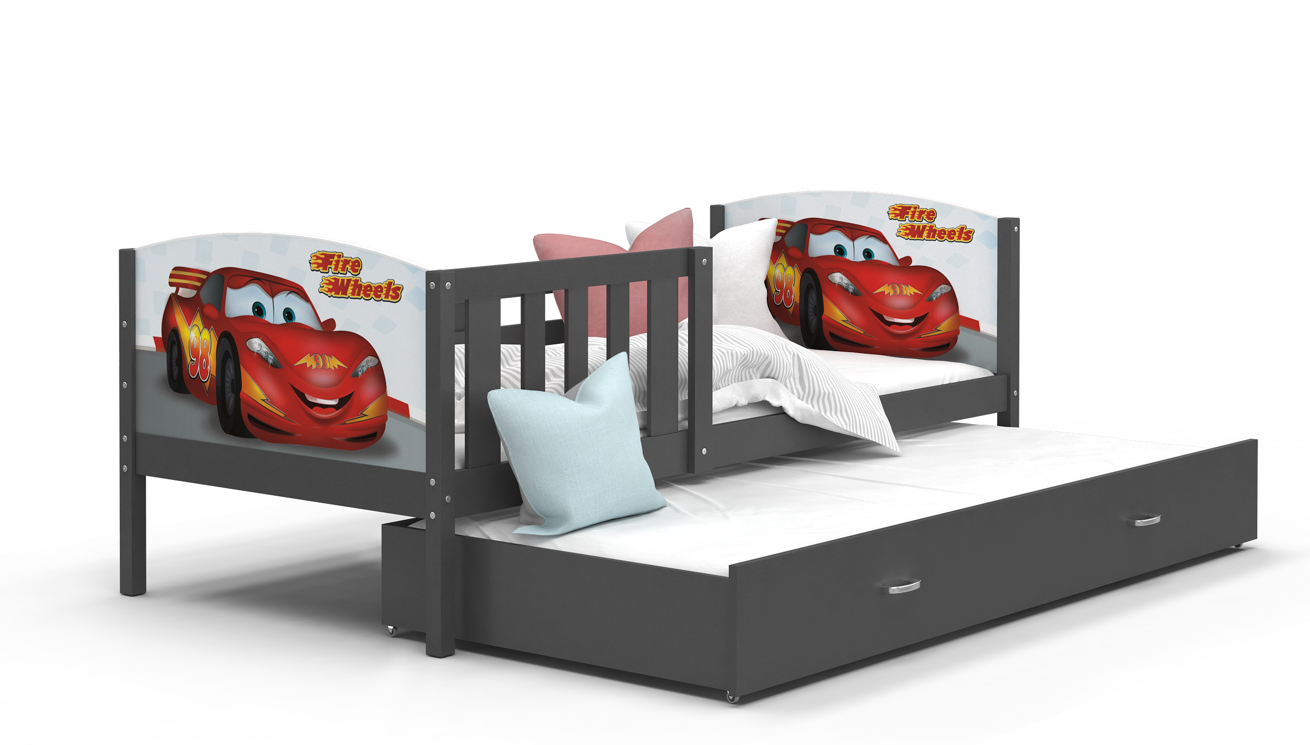 Detská posteľ s prístelkou TAMI R2 - 190x80 cm - BLESK MCQUEEN - šedá