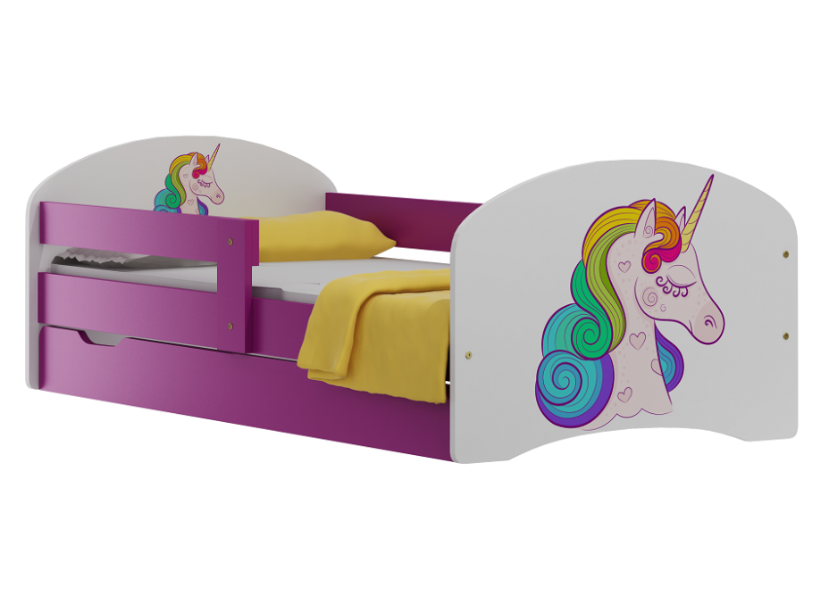 Detská posteľ so zásuvkami a zábranami FAREBNÝ Jednorožec