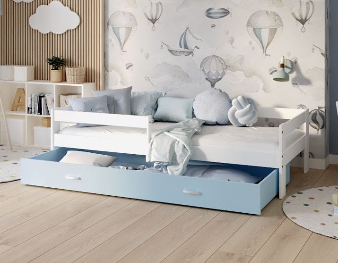 Detská posteľ so zásuvkou je dostupná v mnohých farebných variantoch. Vy tak budete mať možnosť zladiť posteľ skvele s detskou izbou a priviesť interiér k dokonalosti. Vaše dieťa si túto posteľ zamiluje!