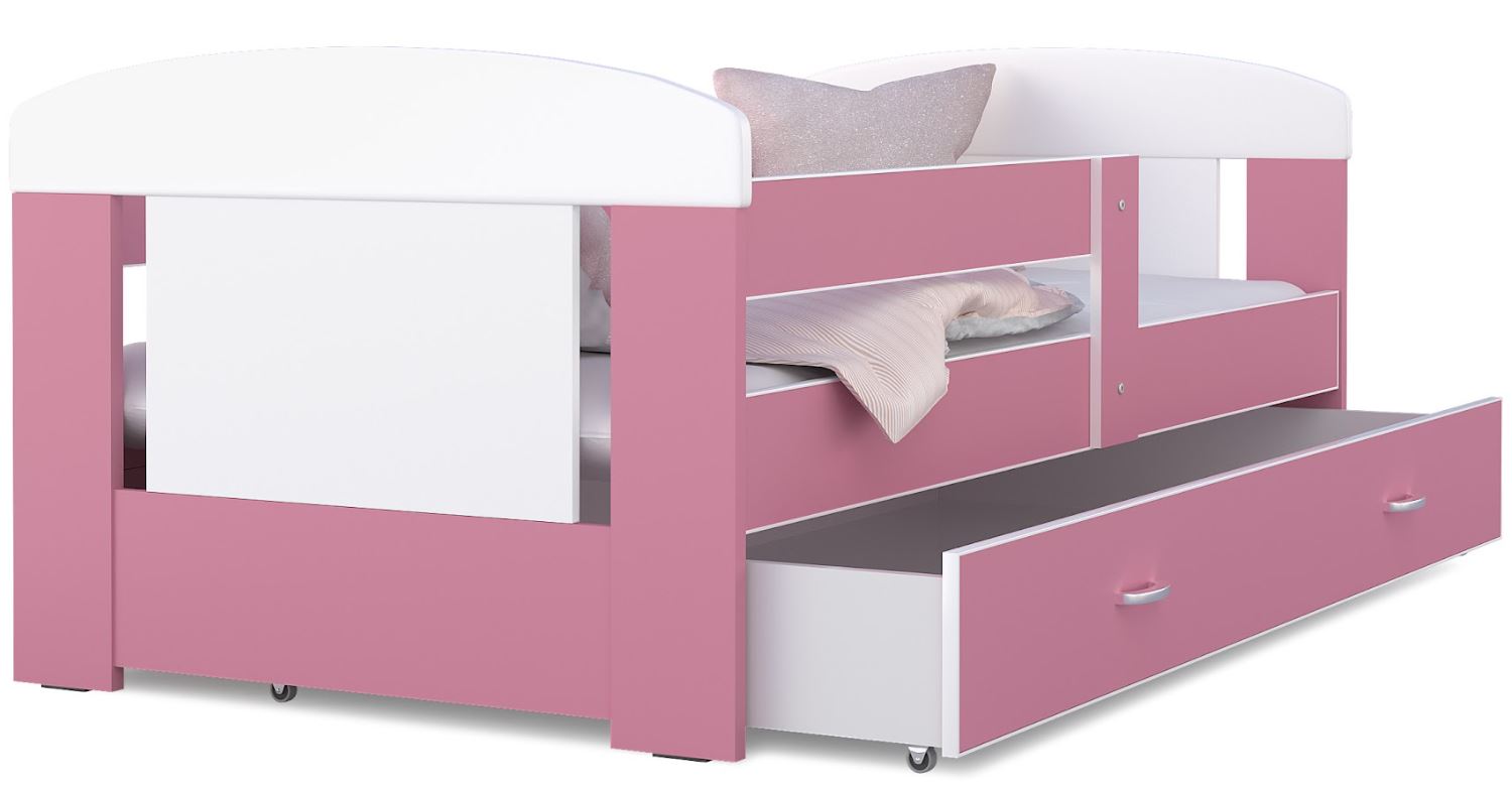 Detská posteľ so zásuvkou PHILIP - 160x80 cm - ružovo-biela