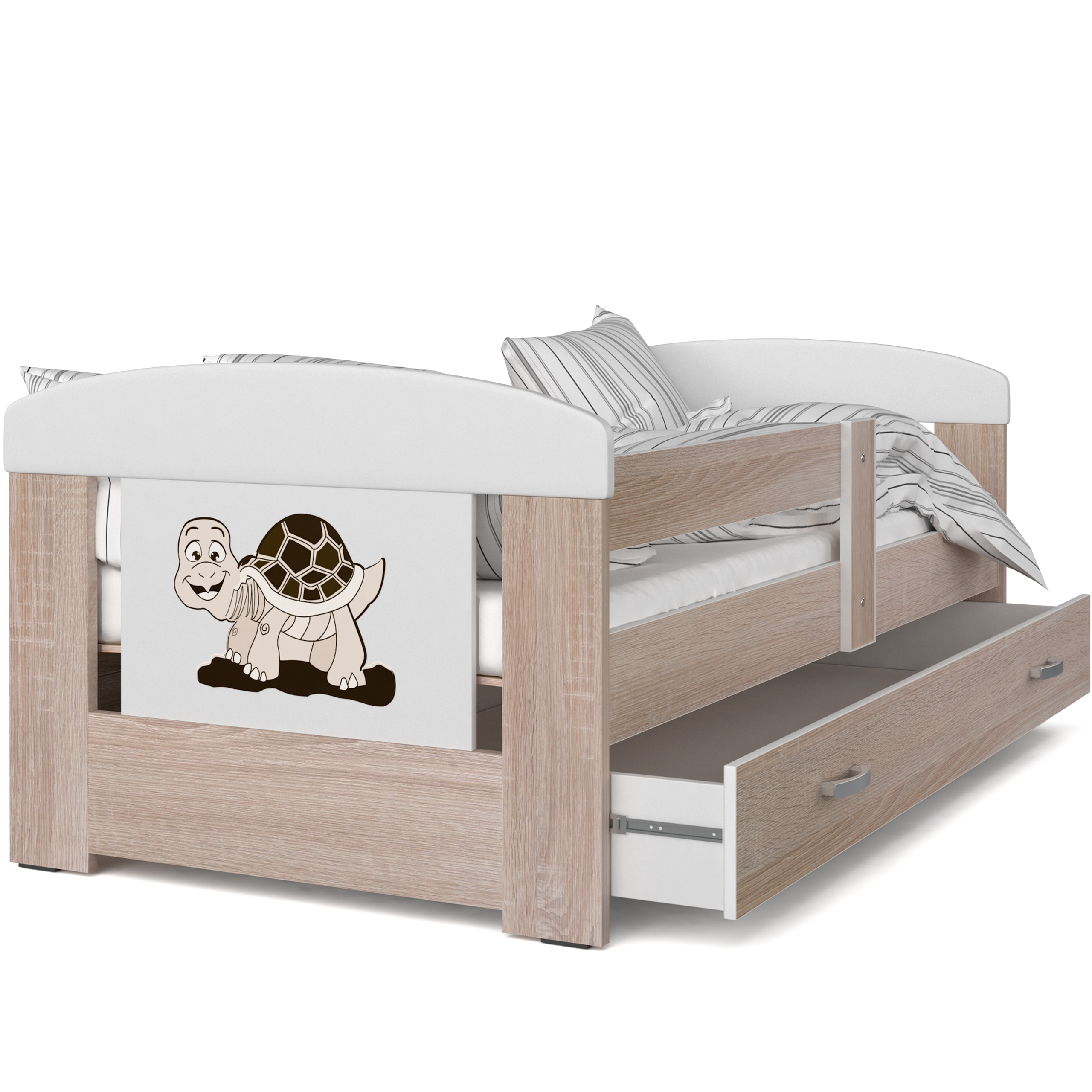 Detská posteľ so zásuvkou PHILIP - 160x80 cm - sonoma / želvička