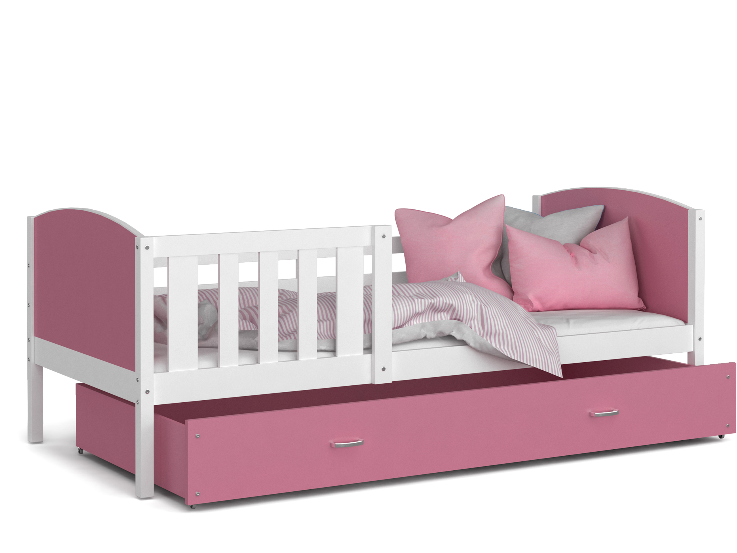 Detská posteľ so zásuvkou TAMI R - 190x80 cm - ružovo-biela