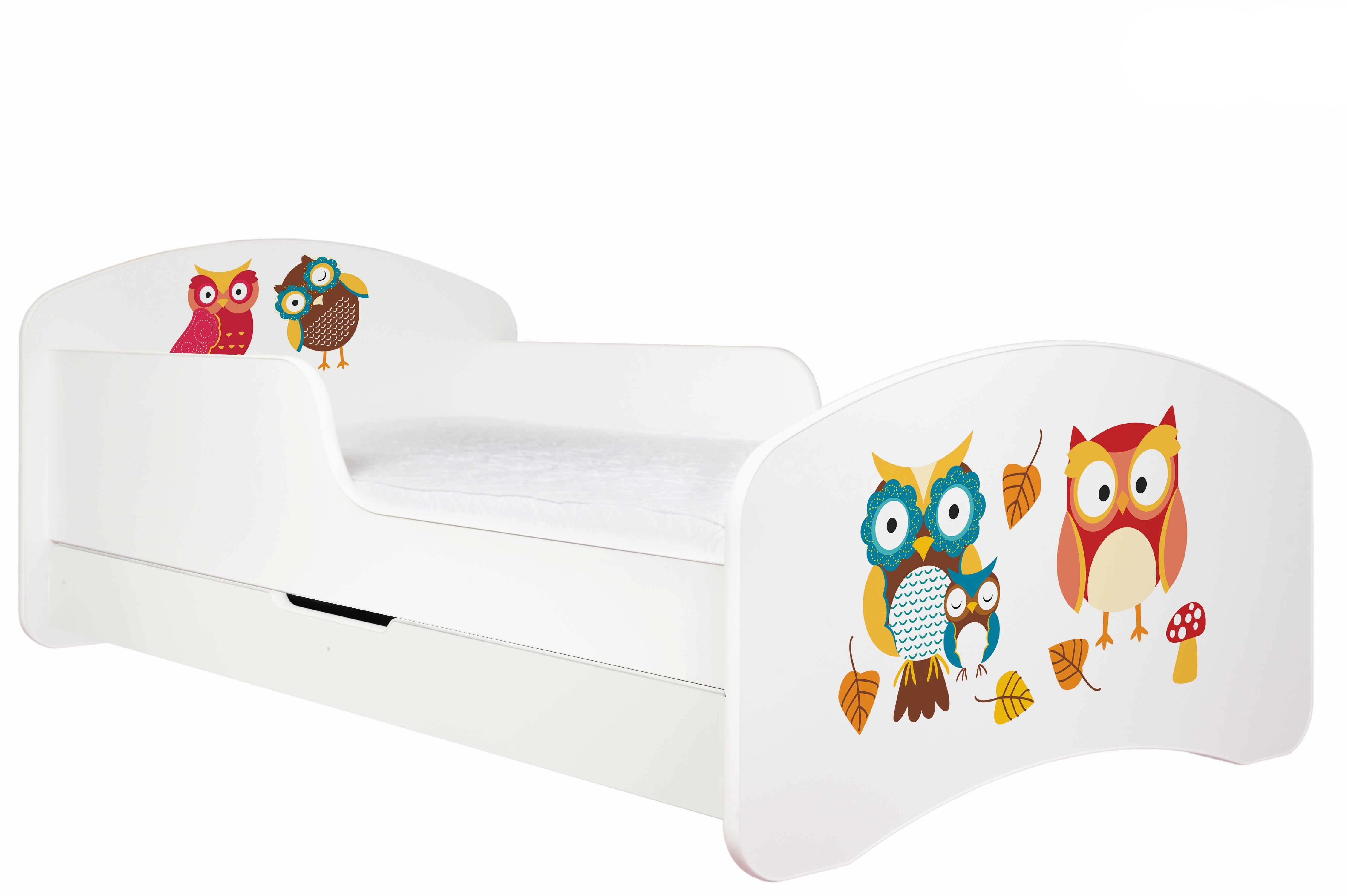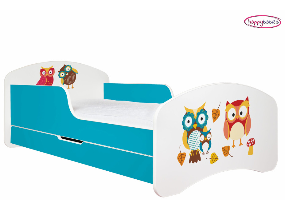 Detská posteľ so zásuvkou 140x70 sovie RODINKA + matrace ZADARMO!