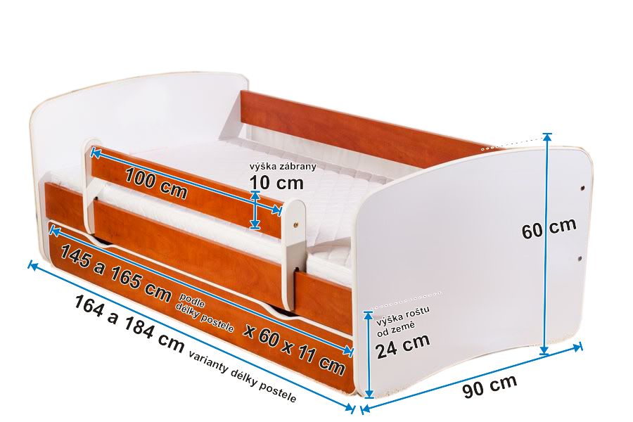 Novinka! Bariérky možné podľa potreby jednoducho odmontovať a preložiť podľa potreby. Detská posteľ z vysoko kvalitnej lamino dosky. Na čelách postele je krásny farebná potlač, ktorý sa Vášmu dieťa určite zapáči. K tlačeniu obrázkov boli použité ekologické farby, ktoré sú naviac fixované laminátovým profilom, a to preto, aby nedochádzalo k opotrebovaniu alebo vyblednutie farieb. Okraje postele sú bez ostrých hrán. Zábrana na bokoch postele chráni dieťa pred pádom z postele počas spánku. Veľmi kvalitné spracovanie a kvalita použitých materiálov zaisťuje, že každá detská nami ponúkaná posteľ s motívom je kvalitná a veľmi odolná. Rošt postele je vyrobený z kvalitných líšt, ktoré majú hrúbku min. 2 cm. Nosnosť je do 150 kg. Rozmer postele je podľa Vášho výberu.