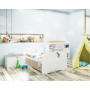 Zábrana na bokoch postele chráni dieťa pred pádom z postele počas spánku. Bariérku je možné podľa potreby jednoducho odmontovať alebo dať na druhú stranu. Precízne spracovanie a kvalita použitých materiálov zaisťuje, že každá detská posteľ je veľmi odolná a kvalitná. Ako praktický úložný priestor slúži pojazdná zásuvka na 4 gumových kolieskach. Posteľ je variabilná a je možné ju zostaviť na pravú aj ľavú stranu.