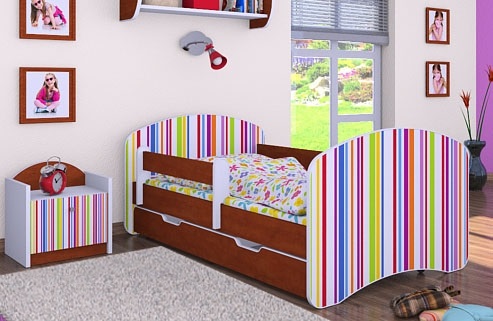 Detská posteľ tvorí základ každej detskej izbičky. Ponúkame Vám detskú posteľ z vysoko kvalitnej lamino dosky, na čelách postele je krásná farebná potlač, ktorá sa Vášmu dieťaťu určite zapáči. K tlačeniu obrázkov boli použité ekologické farby, ktoré sú naviac fixované laminátovým profilom, a to preto, aby nedochádzalo k opotrebovaniu alebo vyblednutie farieb. Okraje postieľky sú bez ostrých hrán. Zábrana na bokoch postele chráni dieťa pred pádom z postele počas spánku. Bariérky možné podľa potreby jednoducho odmontovať alebo preložiť. Precízne spracovanie a kvalita použitých materiálov zaisťuje, že každá detská posteľ je veľmi odolná a kvalitná.
