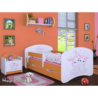 Detská posteľ so zásuvkou 180x90cm zajačikovia - oranžová