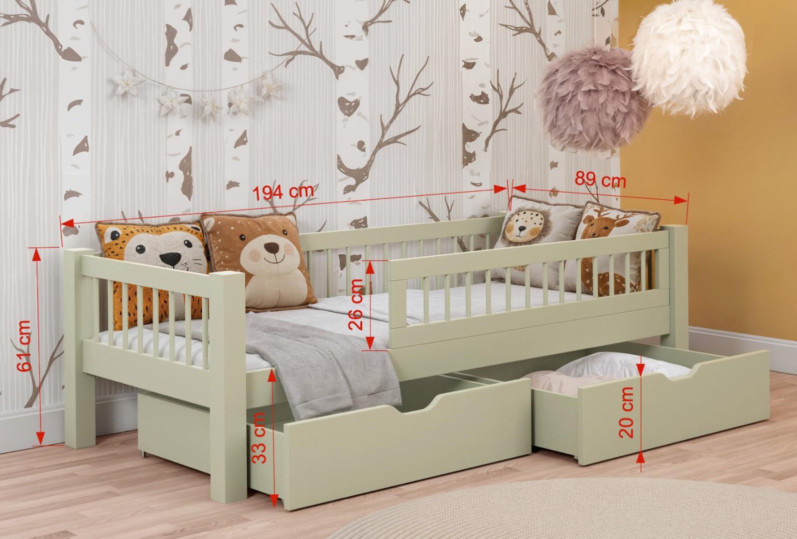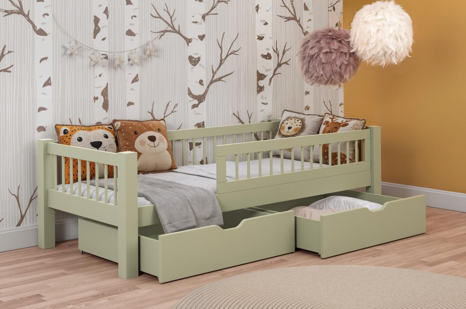 Detská posteľ z masívu borovice ADEL so šuplíkmi - 180x80 cm - olivovo zelená