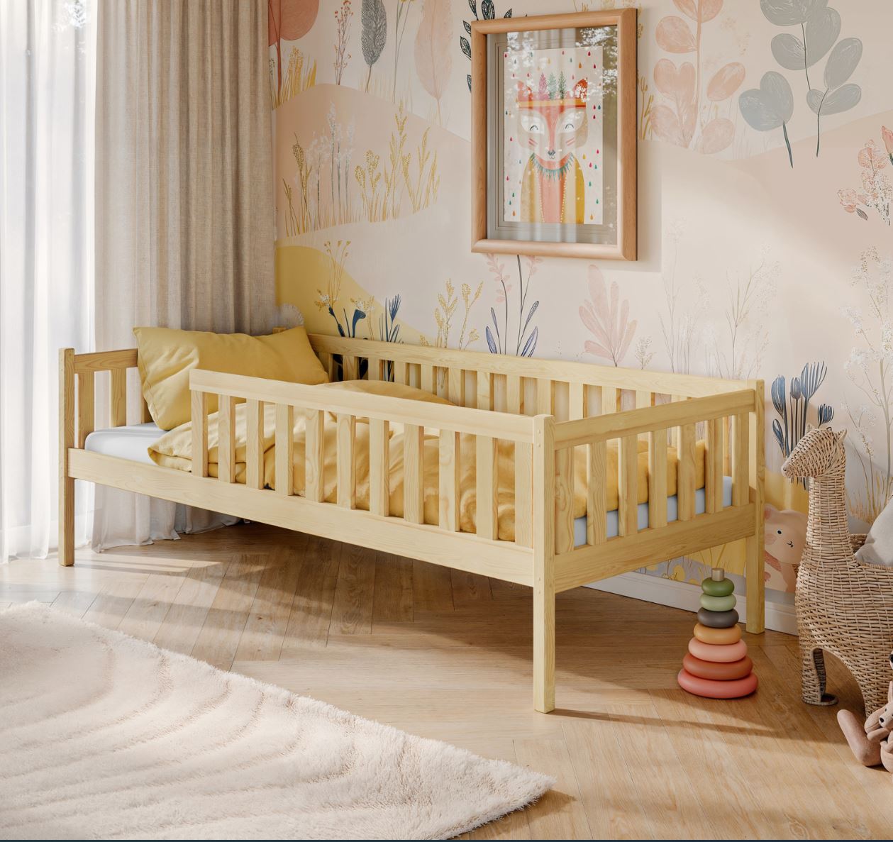 Detská posteľ z masívu borovice AIDA patrí medzi detské postele, ktoré sa vyznačujú jednoduchým designom. Posteľ je starostlivo vyrobená, má pevnú konštrukciu a je prepracovaná do posledného detailu. Borovicové drevo , ktoré sa na jej výrobu používa, je tej najvyššej kvality. Posteľ je odolná proti poškriabaniu a to vďaka trom vrstvám ekologického laku s certifikáciou EN 71-3: 2013. Lak je bez zápachu a vyznačuje sa vynikajúcou svetlostálosťou. Konštrukcia postele je uspôsobená tak, aby zabránila pádu dieťaťa, a to vďaka ochranným bariéram. Súčasťou postele je pevná ochranná bariéra , vďaka ktorej je posteľ vhodná aj pre najmenšie deti. Vaše dieťa sa tak bude cítiť v pokoji a bezpečí. Detská posteľ zaujme svojim krásnym vzhľadom a vytvára tak komplexný prvok, ktorý sa bude vynímať v každej detskej izbe.