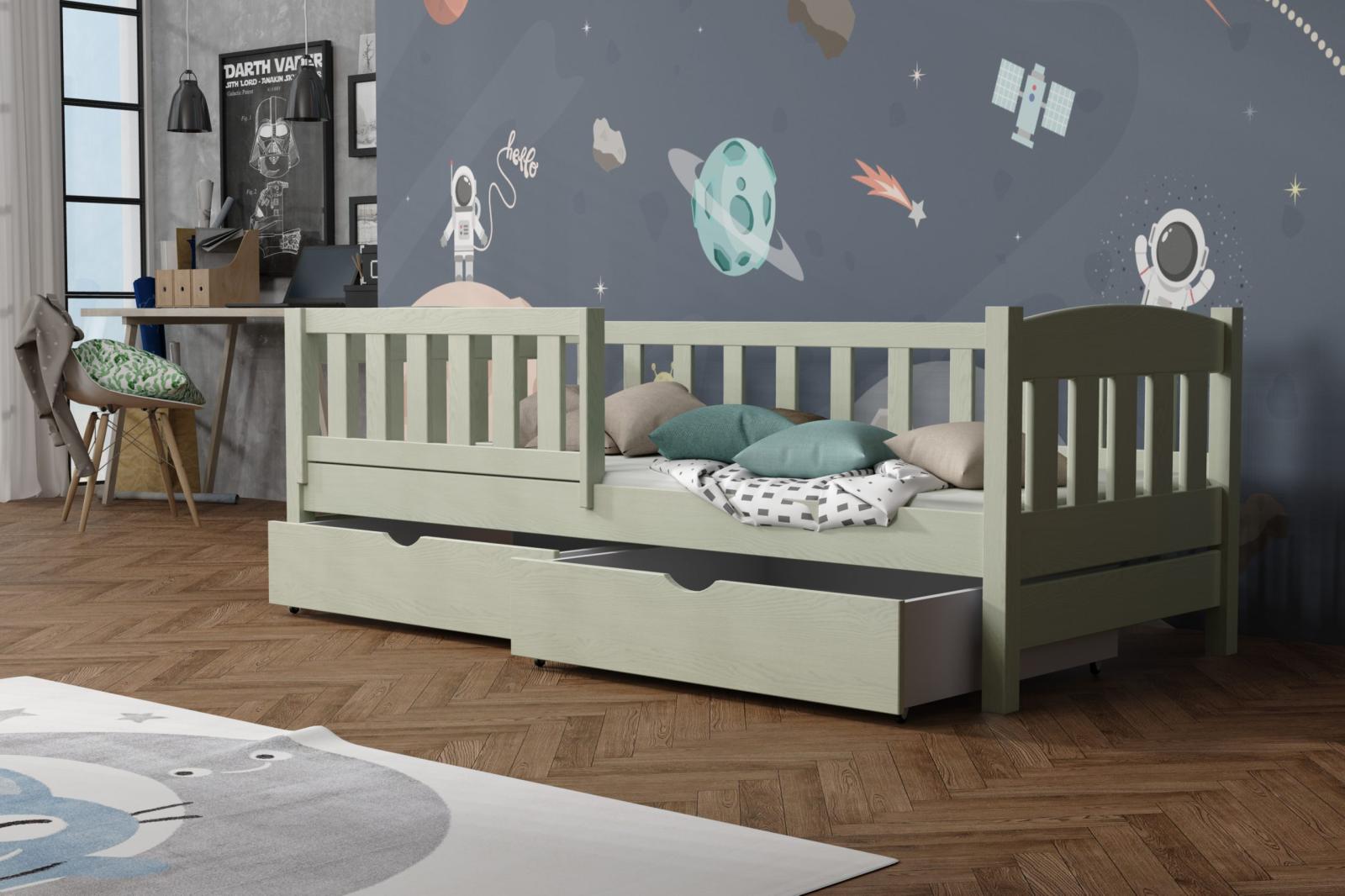 Detská posteľ z masívu borovice BEN so šuplíkmi - 190x90 cm - OLIVOVO ZELENÁ