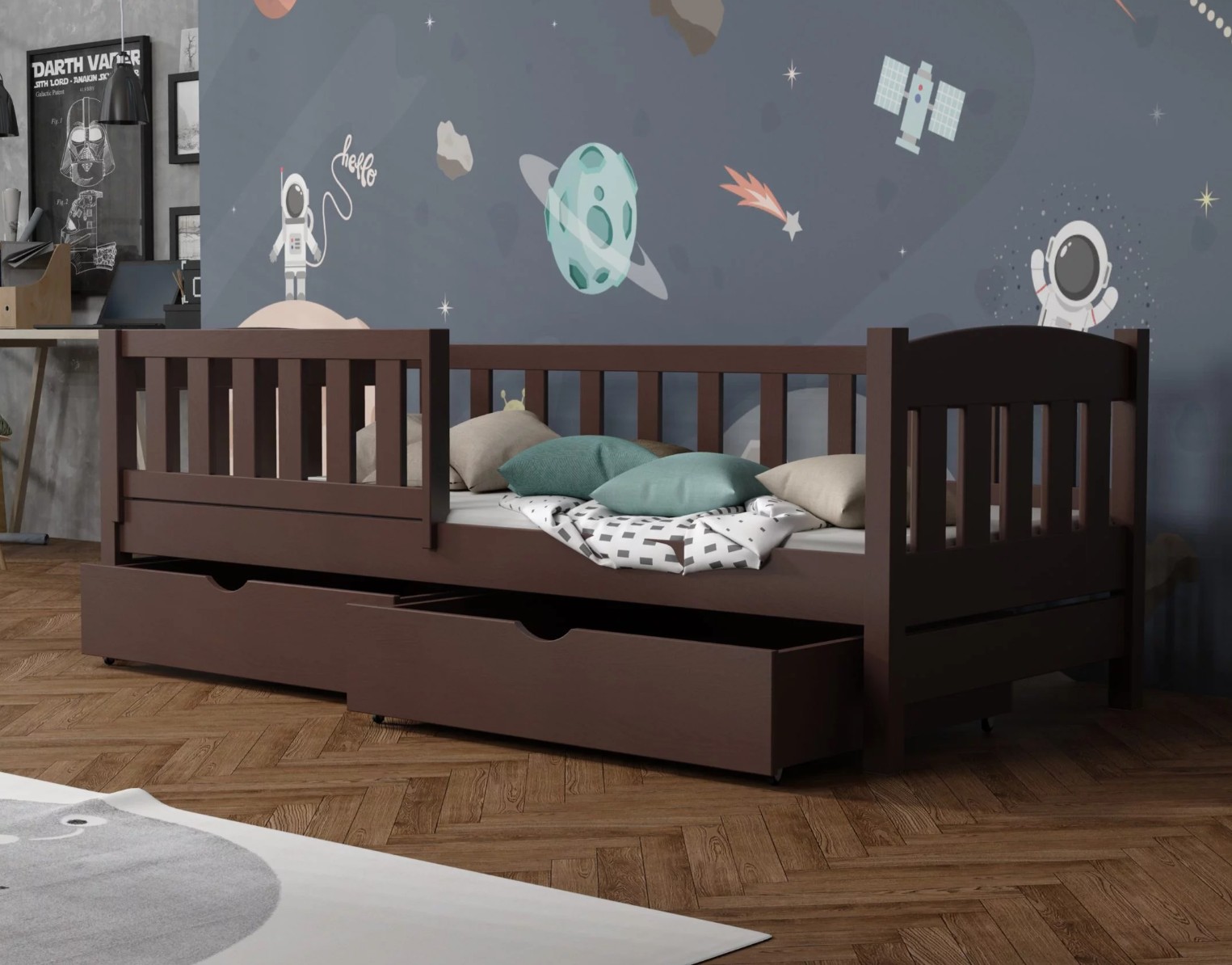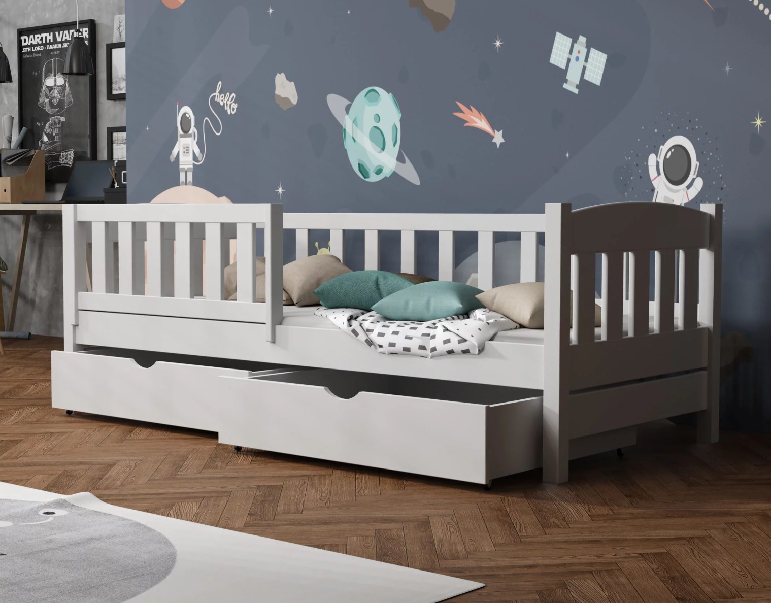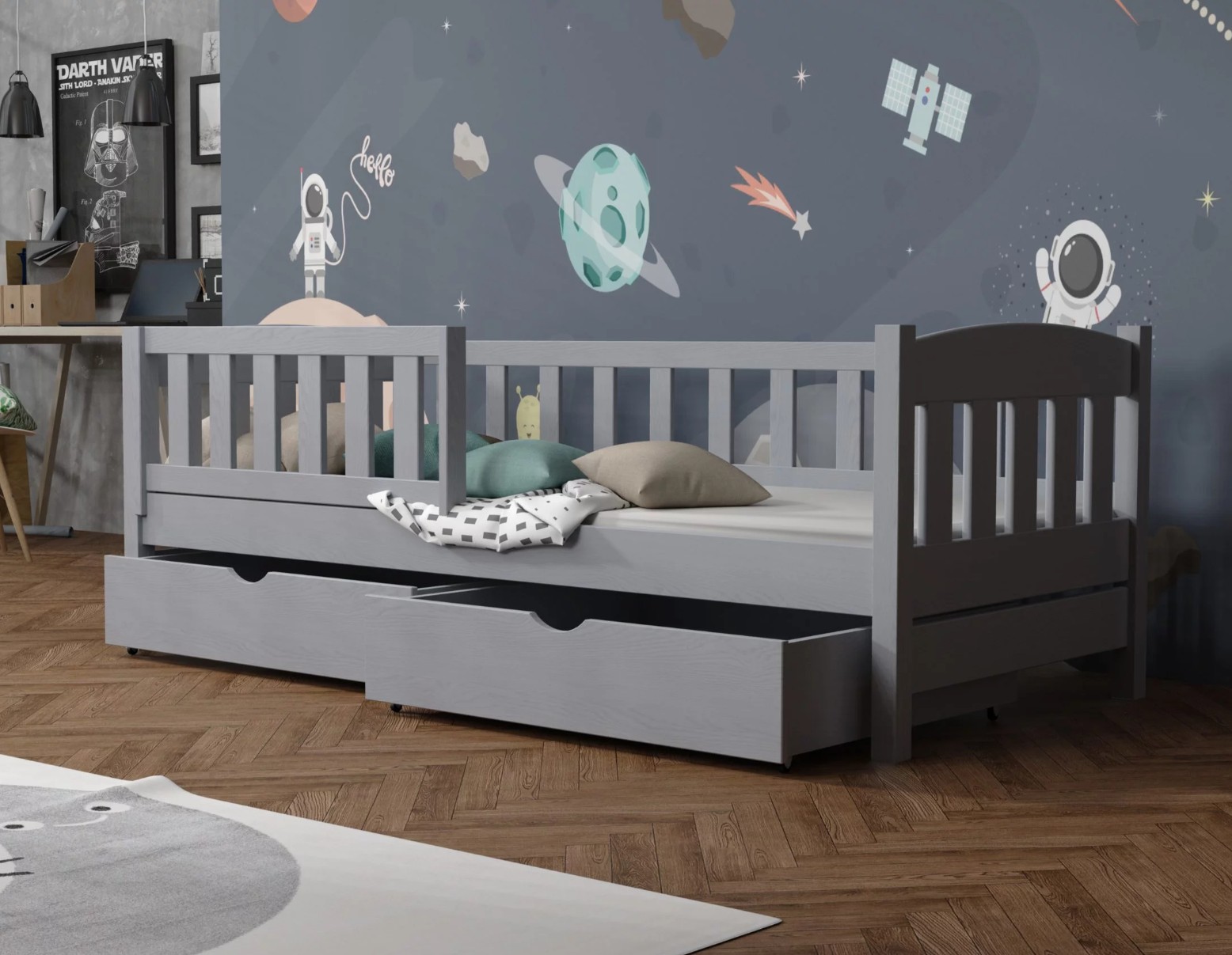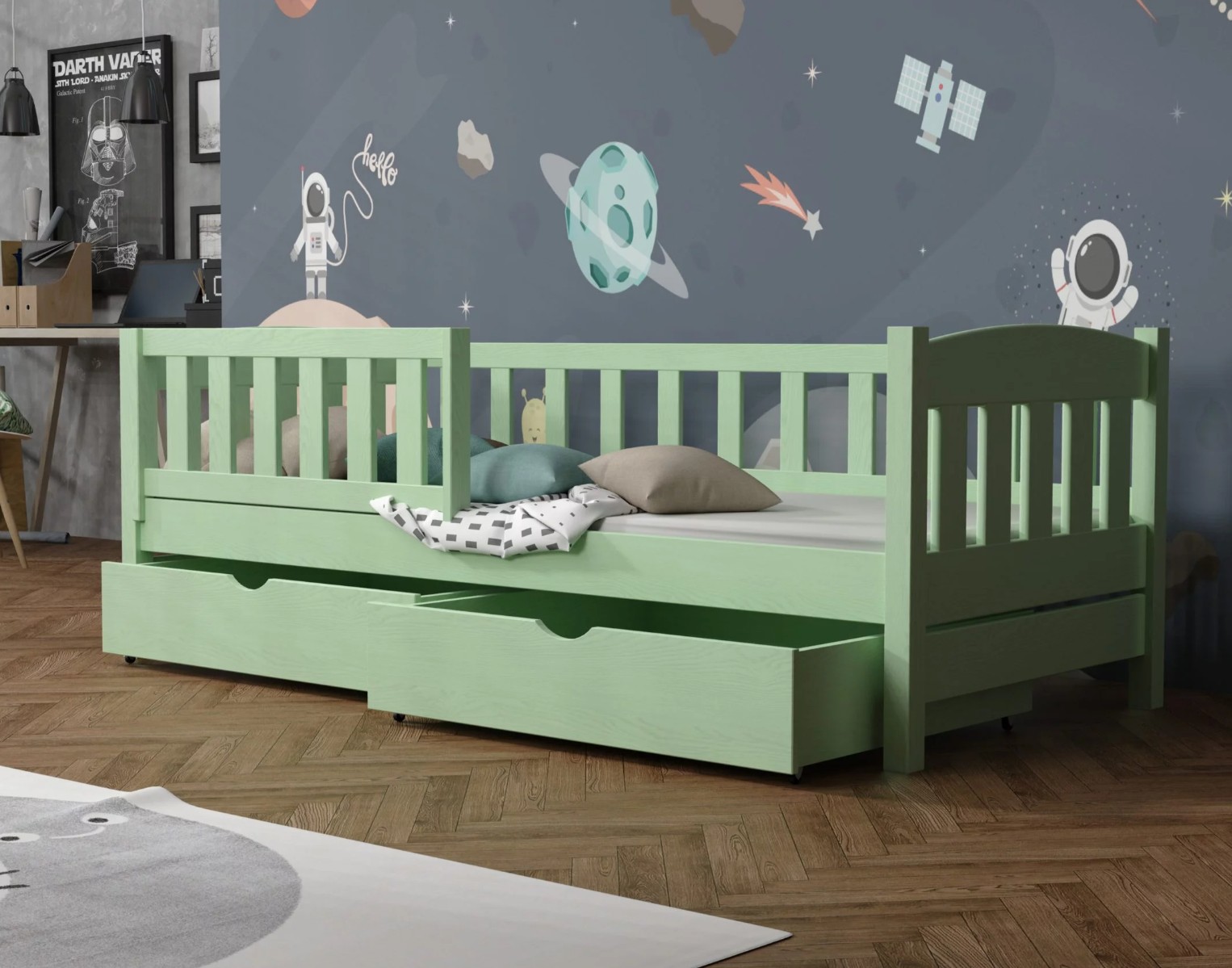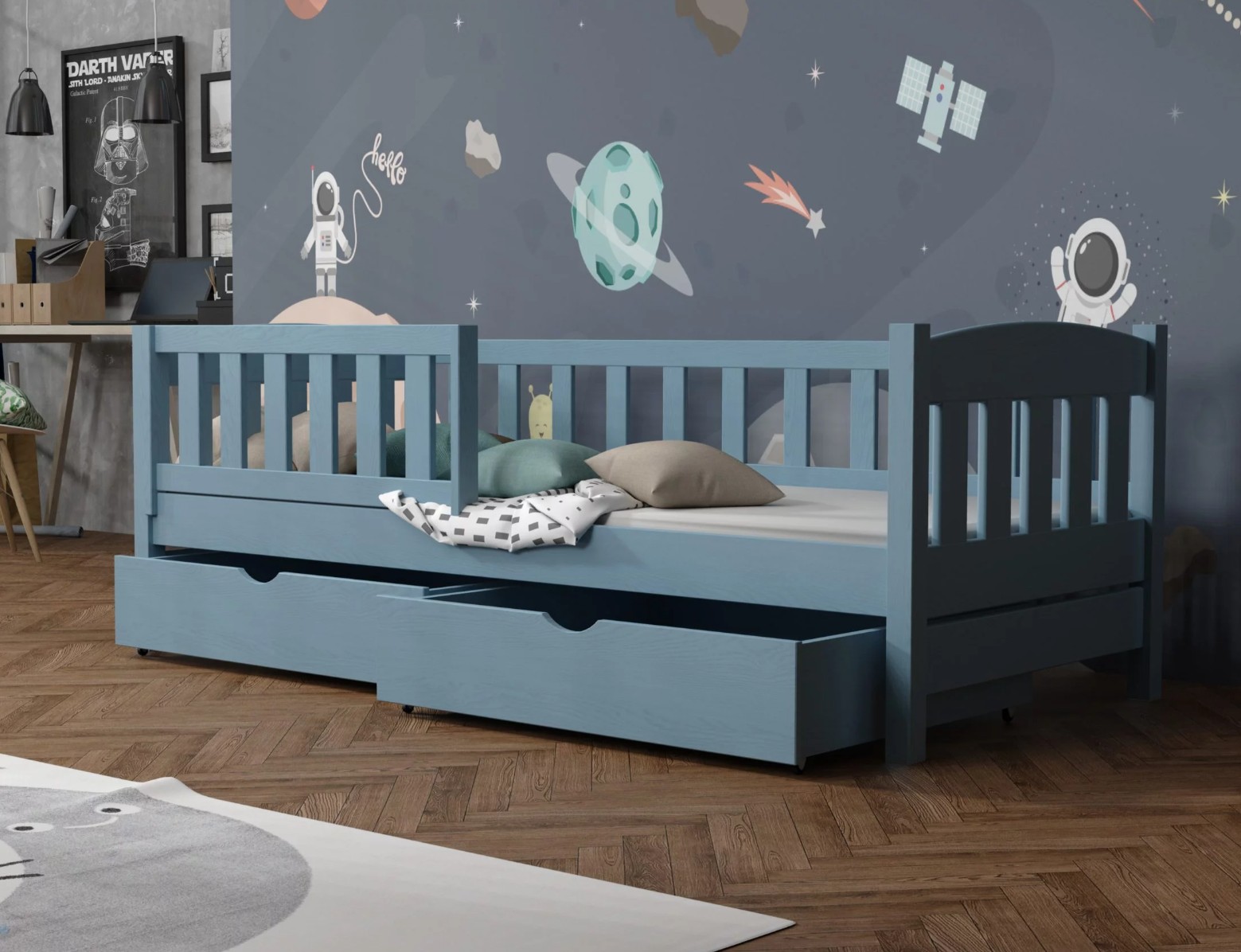 Posteľ BEN sa vďaka minimalistickému designu hodí do každého interiéru. Tento model nie je len miestom pre nočný odpočinok, ale aj pre zábavu! Jednolôžková posteľ BEN je vyrobená z masívneho borovicového dreva , vďaka čomu je mimoriadne pevná a odolná proti poškodeniu. U bočníc a čiel je šírka použitého materiálu 2,6 cm . Bezpečnostná zábrana zaistí vášmu dieťaťu bezpečný spánok po celú noc a zabráni možnosti vypadnutia. Tento prvok je možné odstrániť, keď dieťa povyrastie a už ho nepotrebuje. Posteľ ponúkame v niekoľkých farebných variantoch, prípadne bez povrchových úprav. Surové drevo ponúka prirodzený vzhľad. Posteľ je ekologická, odolná a dá sa ľahko prispôsobiť - jej vzhľad môžete upraviť morením, lakovaním alebo maľovaním podľa vlastného uváženia. Farebné varianty sú ošetrené ekologickým lakom bez zápachu, ktorý zvyšuje odolnosť postele proti poškriabaniu. Posteľ dodávame s dvoma priestrannými šuplíkmi , ktoré slúžia na ukladanie lôžkovín a pomôžu udržať poriadok v detskej izbe. Súčasťou postele je aj kvalitný rošt .