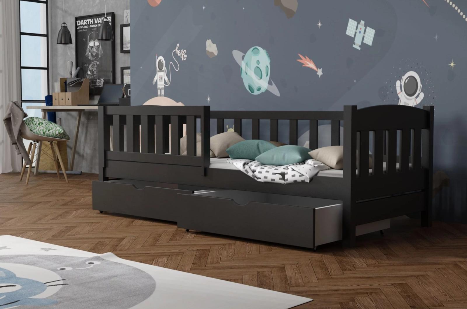 Posteľ BEN sa vďaka minimalistickému designu hodí do každého interiéru. Tento model nie je len miestom pre nočný odpočinok, ale aj pre zábavu! Jednolôžková posteľ BEN je vyrobená z masívneho borovicového dreva , vďaka čomu je mimoriadne pevná a odolná proti poškodeniu. U bočníc a čiel je šírka použitého materiálu 2,6 cm . Bezpečnostná zábrana zaistí vášmu dieťaťu bezpečný spánok po celú noc a zabráni možnosti vypadnutia. Tento prvok je možné odstrániť, keď dieťa povyrastie a už ho nepotrebuje. Posteľ ponúkame v niekoľkých farebných variantoch, prípadne bez povrchových úprav. Surové drevo ponúka prirodzený vzhľad. Posteľ je ekologická, odolná a dá sa ľahko prispôsobiť - jej vzhľad môžete upraviť morením, lakovaním alebo maľovaním podľa vlastného uváženia. Farebné varianty sú ošetrené ekologickým lakom bez zápachu, ktorý zvyšuje odolnosť postele proti poškriabaniu. Posteľ dodávame s dvoma priestrannými šuplíkmi , ktoré slúžia na ukladanie lôžkovín a pomôžu udržať poriadok v detskej izbe. Súčasťou postele je aj kvalitný rošt .