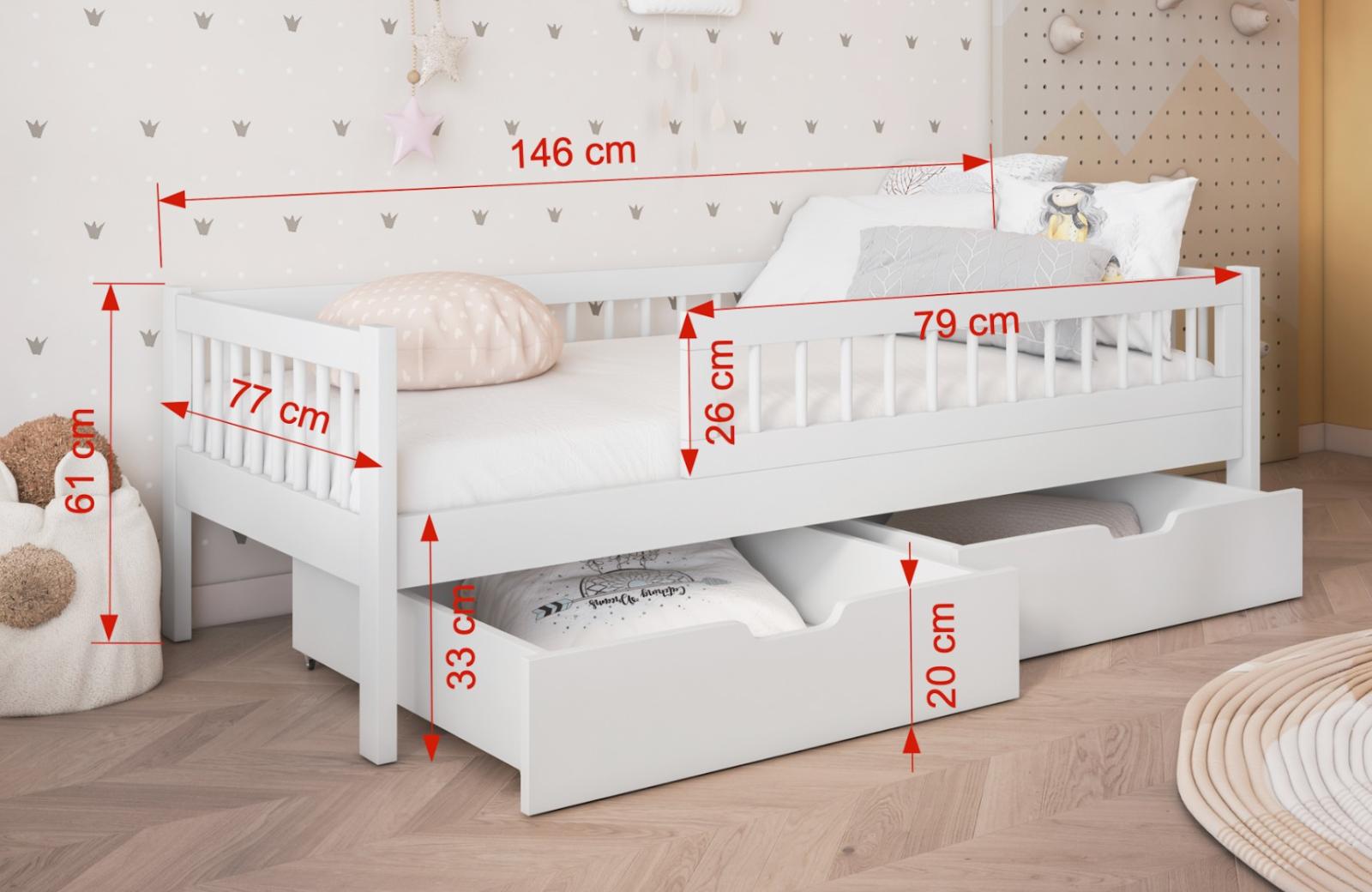 Detská posteľ z masívu borovice FLORES je elegantné jednolôžko, ktoré dokonale kombinuje funkčnosť s moderným designom. Posteľ sa vyznačuje svojou praktickosťou a atraktívnym dizajnom , ktorý skvele zapadne do každej detskej izby. Posteľ je vyrobená z veľmi kvalitného borovicového dreva , ktoré je ošetrené tromi vrstvami ekologického laku. Tým je zaistená vysoká odolnosť postele voči mechanickému poškodeniu a rôznym druhom nečistôt. Bezpečnosť detí zaisťujú vysoké bočnice a ochranná bariéra , ktorá zabráni nechceným pádom dieťaťa počas spánku. Posteľ je dodávaná s dvoma priestrannými šuplíkmi na kolieskach, kam si môžete uložiť lôžkoviny, hračky alebo iné nevyhnutnosti.