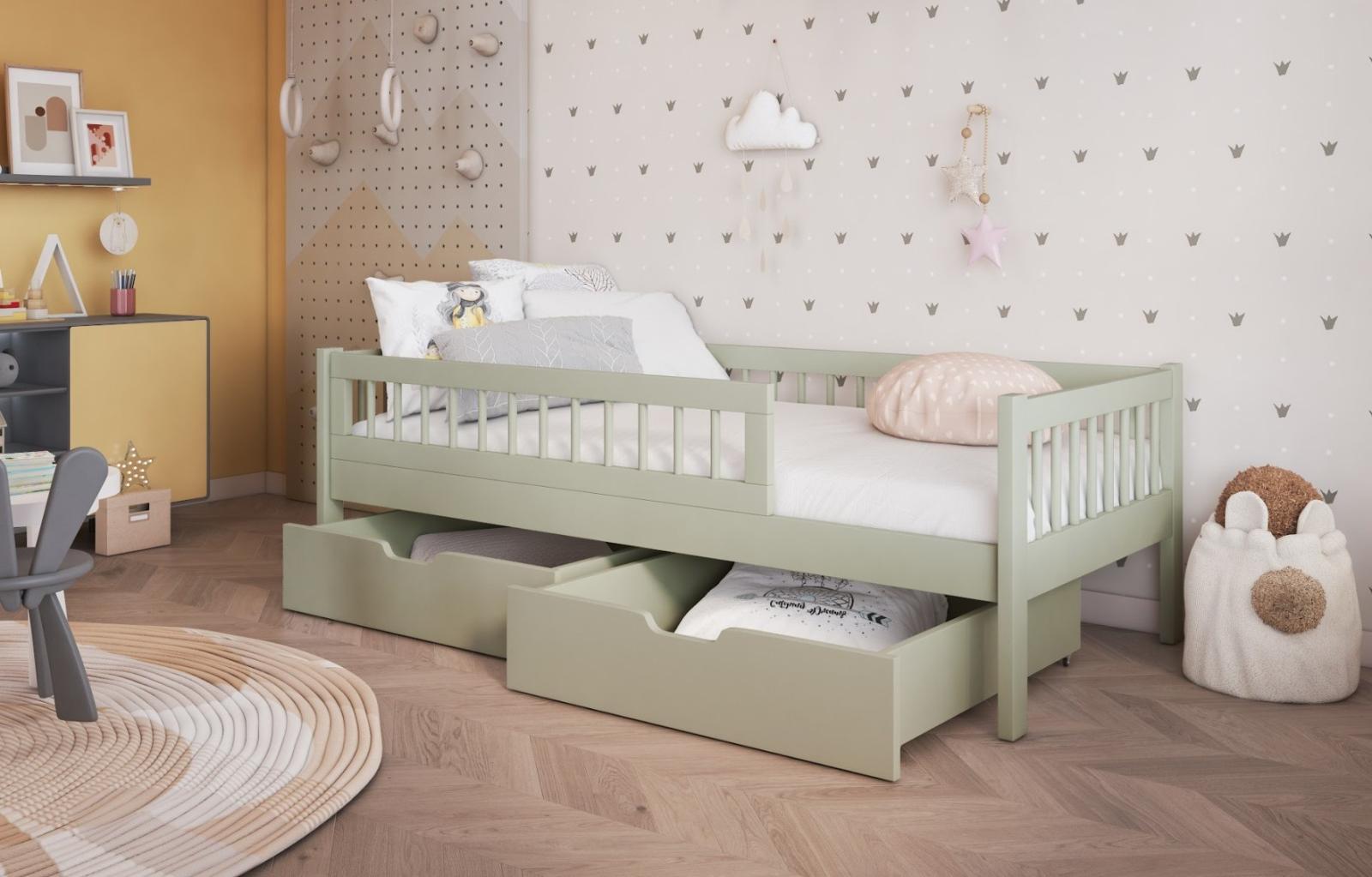 Detská posteľ z masívu borovice FLORES so šuplíkmi - 140x70 cm - olivovo zelená