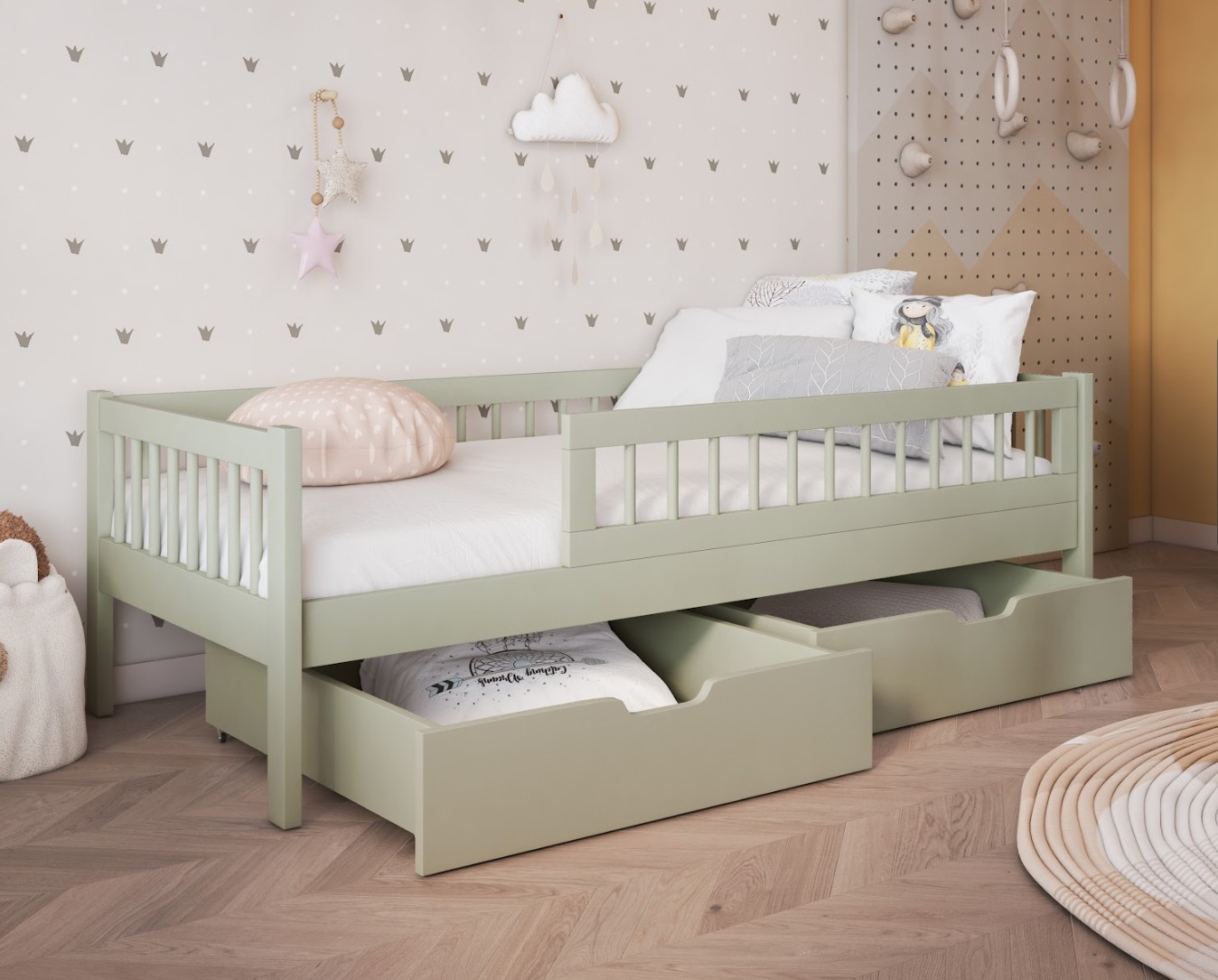 Detská posteľ z masívu borovice FLORES so šuplíkmi - 180x80 cm - olivovo zelená