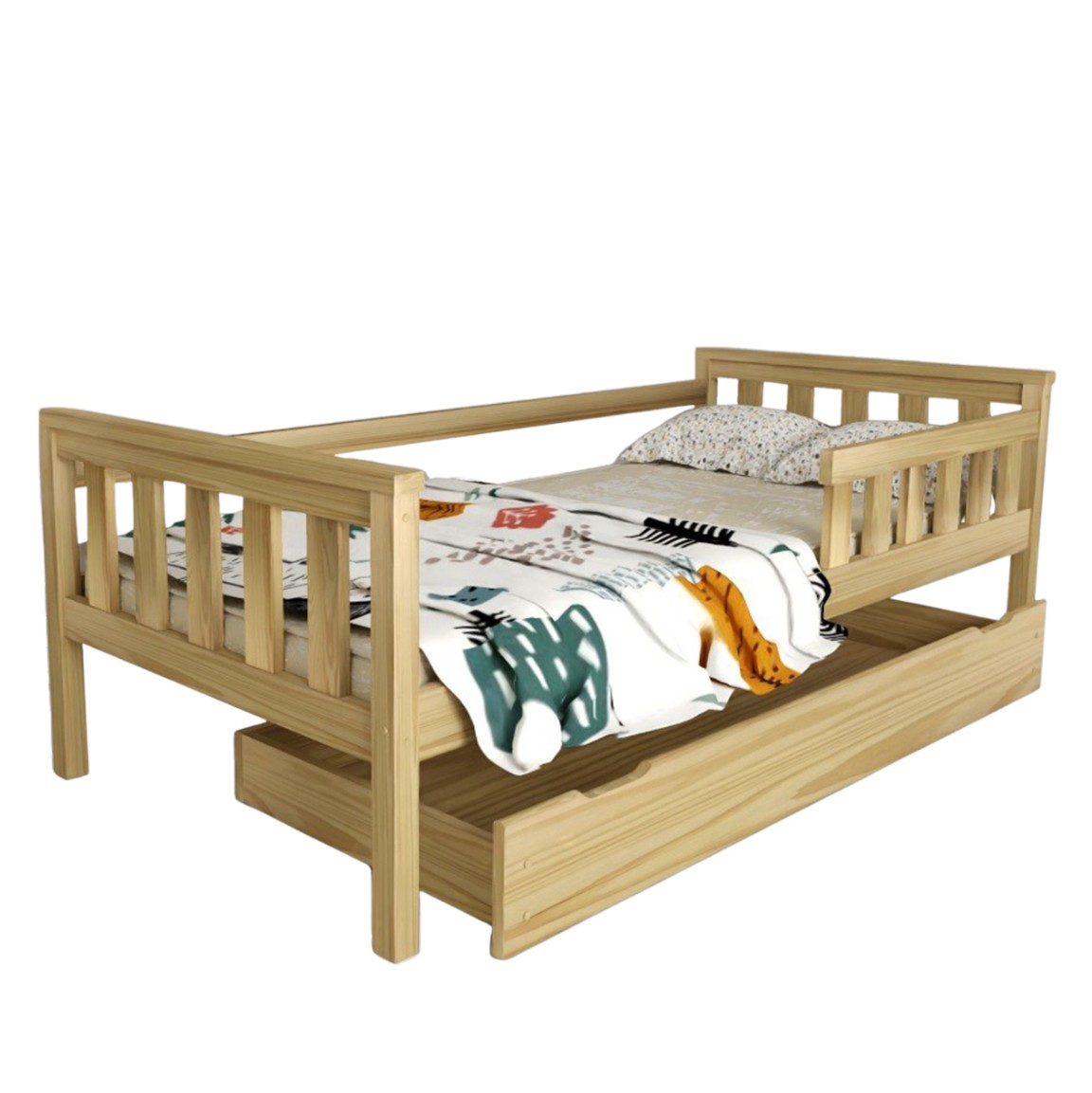 Detská posteľ z masívu borovice FRANK ponúka vynikajúcu voľbu pre tých, ktorí hľadajú robustnú a kvalitnú posteľ. Je praktická a má atraktívny design. Táto posteľ je vyrobená z prvotriedneho borovicového dreva, ktoré má mnoho výhod. Drevo sa ľahko spracováva, je pružné a zároveň veľmi pevné. Posteľ je pokrytá ekologickým bezfarebným lakom, čo zaisťuje vysokú odolnosť voči mechanickému poškodeniu a nečistotám. Bezpečnosť detí zaisťuje ochranná bariéra, ktorú je možné namontovať na pravú aj ľavú stranu postele. K posteli je taktiež dodávaný pevný latkový rošt. Posteľ je možné zakúpiť aj vo variante so šuplíkom na kolieskach, ktorý má praktické výrezy pre ľahkú manipuláciu. Maximálna nosnosť postele je 90 kg.