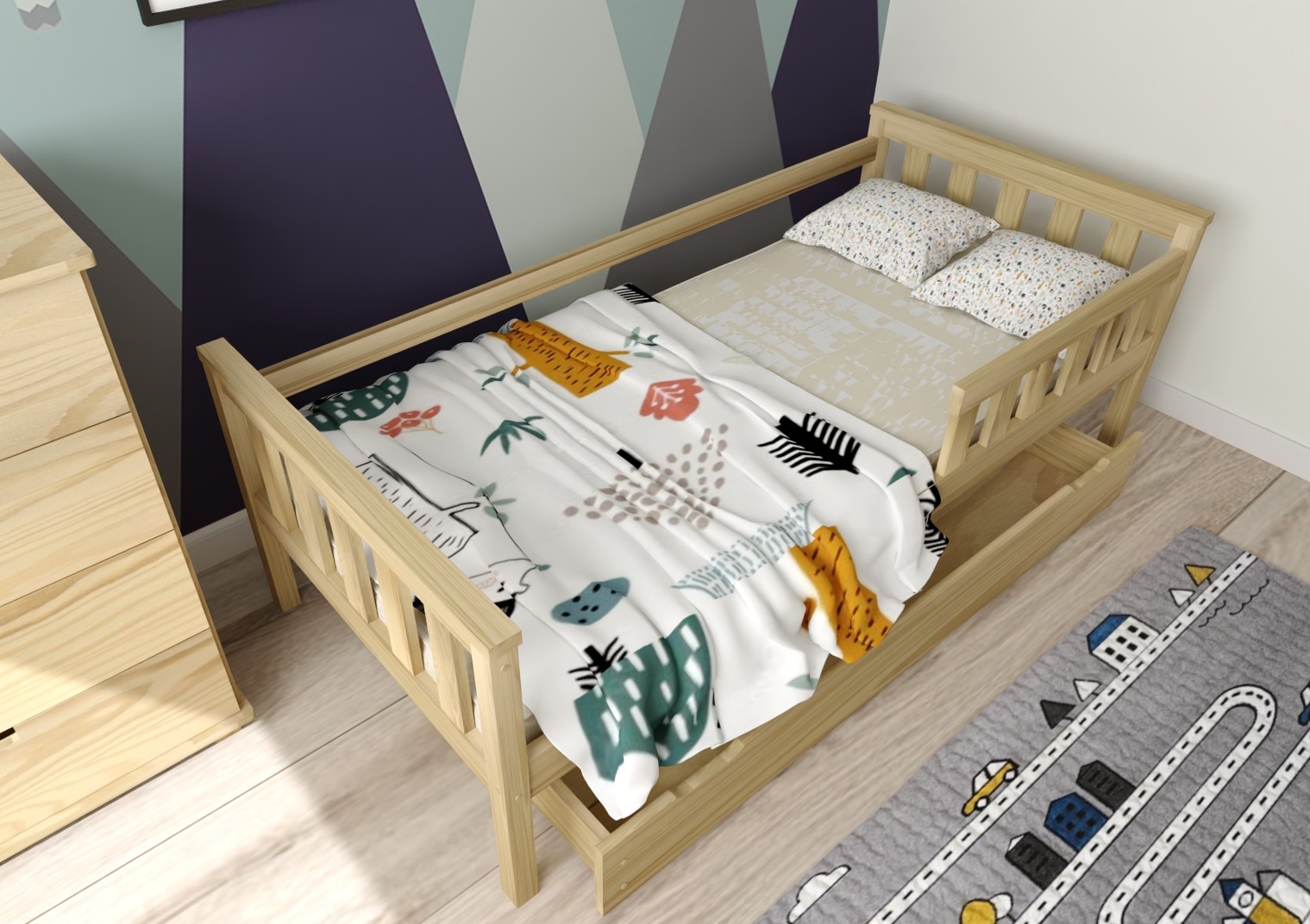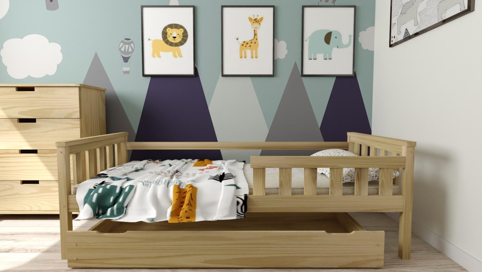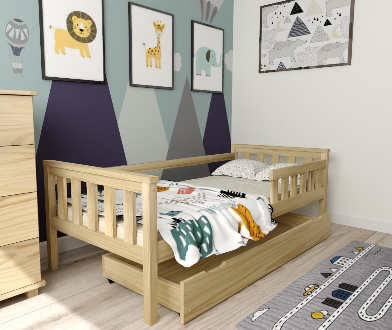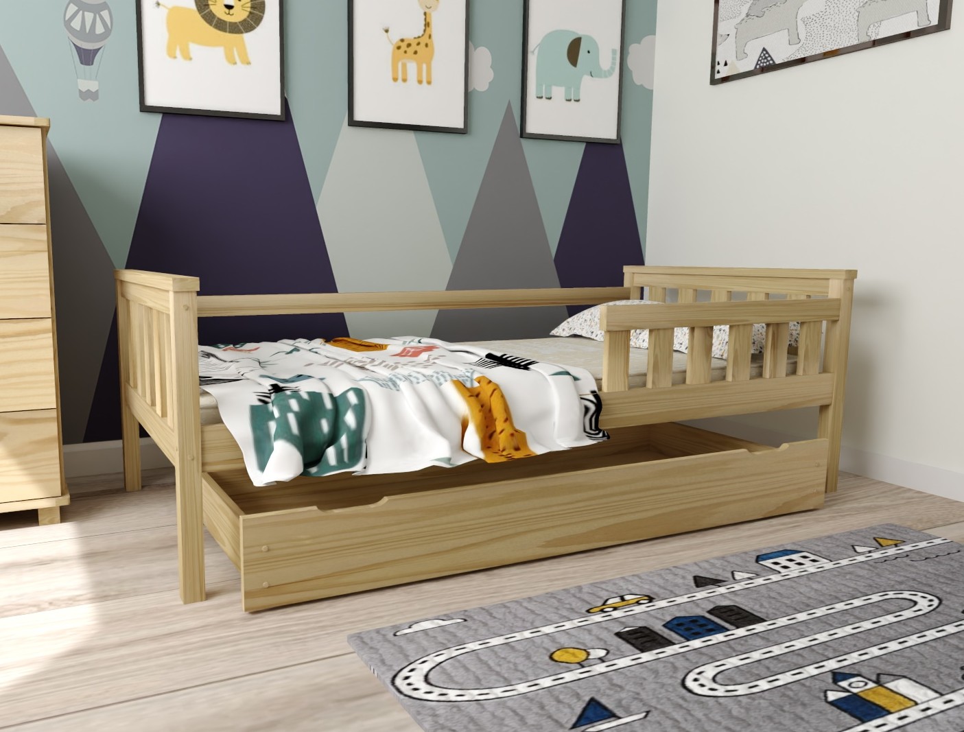 Detská posteľ z masívu borovice FRANK ponúka vynikajúcu voľbu pre tých, ktorí hľadajú robustnú a kvalitnú posteľ. Je praktická a má atraktívny design. Táto posteľ je vyrobená z prvotriedneho borovicového dreva, ktoré má mnoho výhod. Drevo sa ľahko spracováva, je pružné a zároveň veľmi pevné. Posteľ je pokrytá ekologickým bezfarebným lakom, čo zaisťuje vysokú odolnosť voči mechanickému poškodeniu a nečistotám. Bezpečnosť detí zaisťuje ochranná bariéra, ktorú je možné namontovať na pravú aj ľavú stranu postele. K posteli je taktiež dodávaný pevný latkový rošt. Posteľ je možné zakúpiť aj vo variante so šuplíkom na kolieskach, ktorý má praktické výrezy pre ľahkú manipuláciu. Maximálna nosnosť postele je 90 kg.
