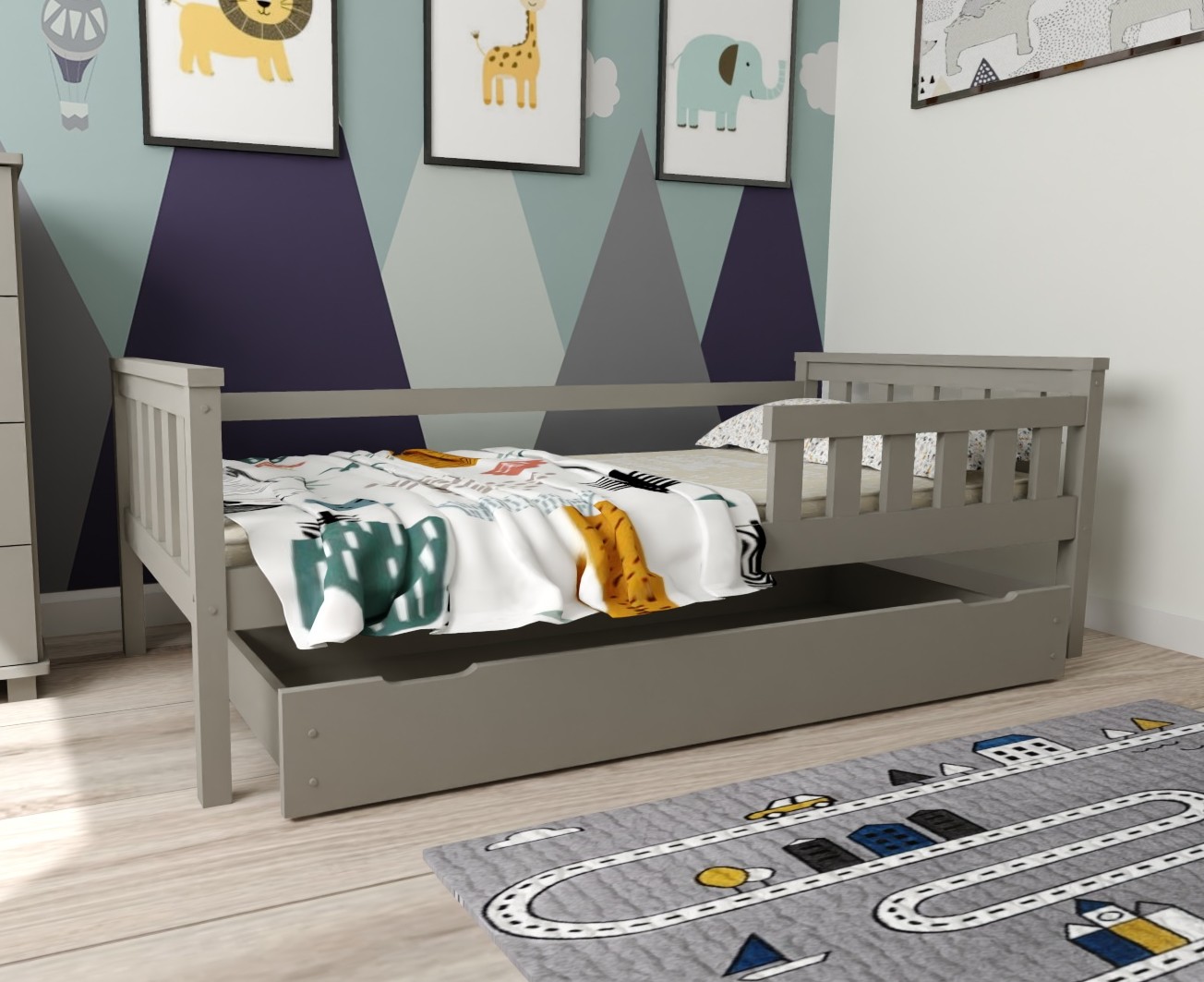 Detská posteľ z masívu borovice FRANK - 200x90 cm - šedá