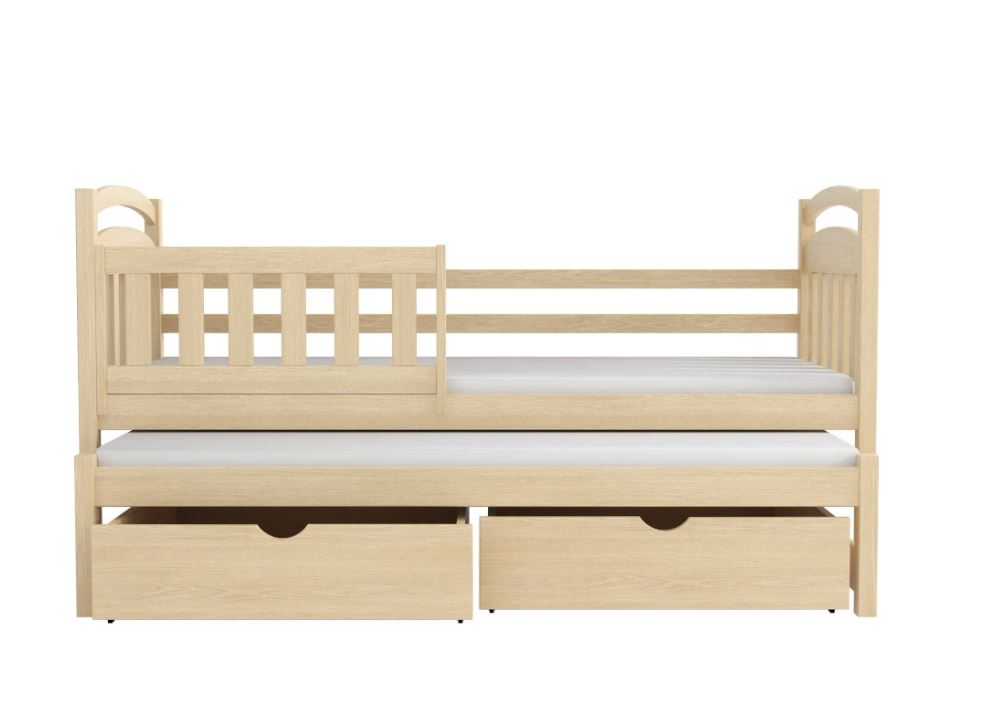 Detská posteľ z masívu borovice KAŠPAR s prístelkou a šuplíkmi - 180x80 cm - PRÍRODNÁ BOROVICA