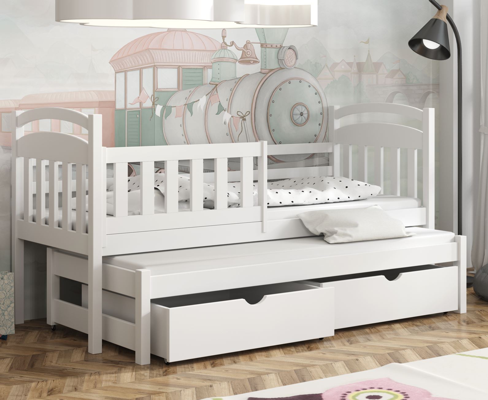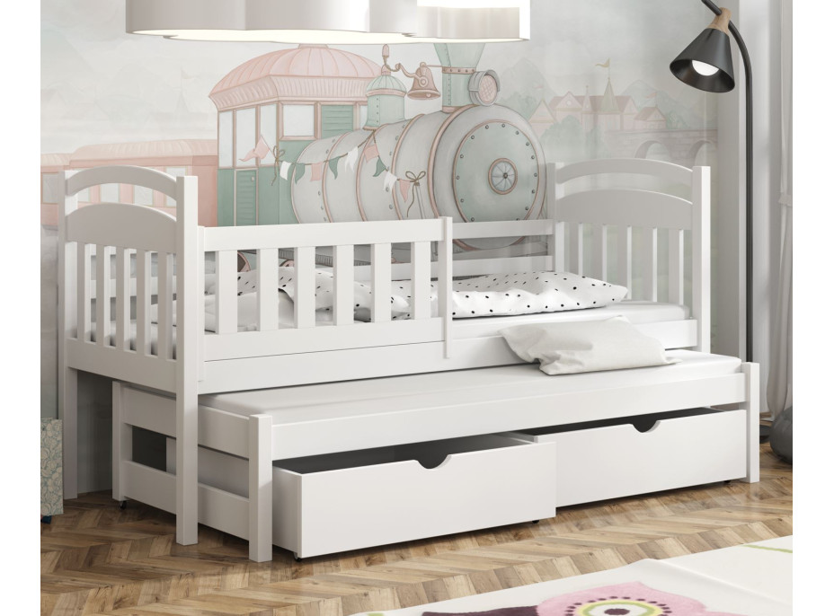 Detská posteľ z masívu borovice KAŠPAR s prístelkou a šuplíky - 200x90 cm - BIELA