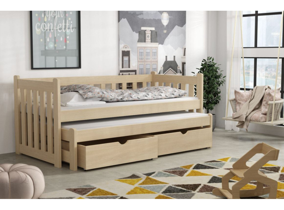 Detská posteľ z masívu borovice KRYŠPÍN s prístelkou a šuplíky - 180x80 cm - PRÍRODNÁ BOROVICA