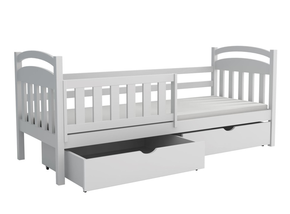 Ak hľadáte jednoduché a praktické riešenie, posteľ KRYŠTOF pre vás bude tou správnou voľbou. Posteľ zaistí vášmu dieťaťu skvelý spánok a zároveň ju ľahko začleníte do svojho interiéru. Je možné ju prispôsobiť tak, aby lepšie vyhovovala potrebám vašich detí. Napríklad menšie dieťa ocenia ochrannú bariérku , zatiaľ čo väčšie dieťa môže potrebovať zásuvky na uloženie stále väčšieho počtu vecí. Posteľ tak bude slúžiť mnoho rokov. Posteľ Krištof je jednolôžková posteľ, ktorá vďaka svojim univerzálnym tvarom a bezpečnostným prvkom bude nielen bezchybne vyzerať v detskej izbičke, ale umožní aj vášmu najmenšiemu pokojné spanie a bezstarostnú, bezpečnú zábavu. Posteľ má vysoké opierky hlavy, široké priečky a zábranu , ktorá chráni dieťa pred vypadnutím a je ľahko demontovateľná. Jednoduchá, estetická konštrukcia z masívneho borovicového dreva pokrytá vodou riediteľným lakom sa dobre hodí do rôznych typov interiérov, hodí sa ku každému typu nábytku. U bočníc a čiel je šírka použitého materiálu 2,6 cm . Súčasťou postele sú dva priestranné šuplíky , ktoré slúžia na uloženie lôžkovín a hračiek a pevný latkový rošt .