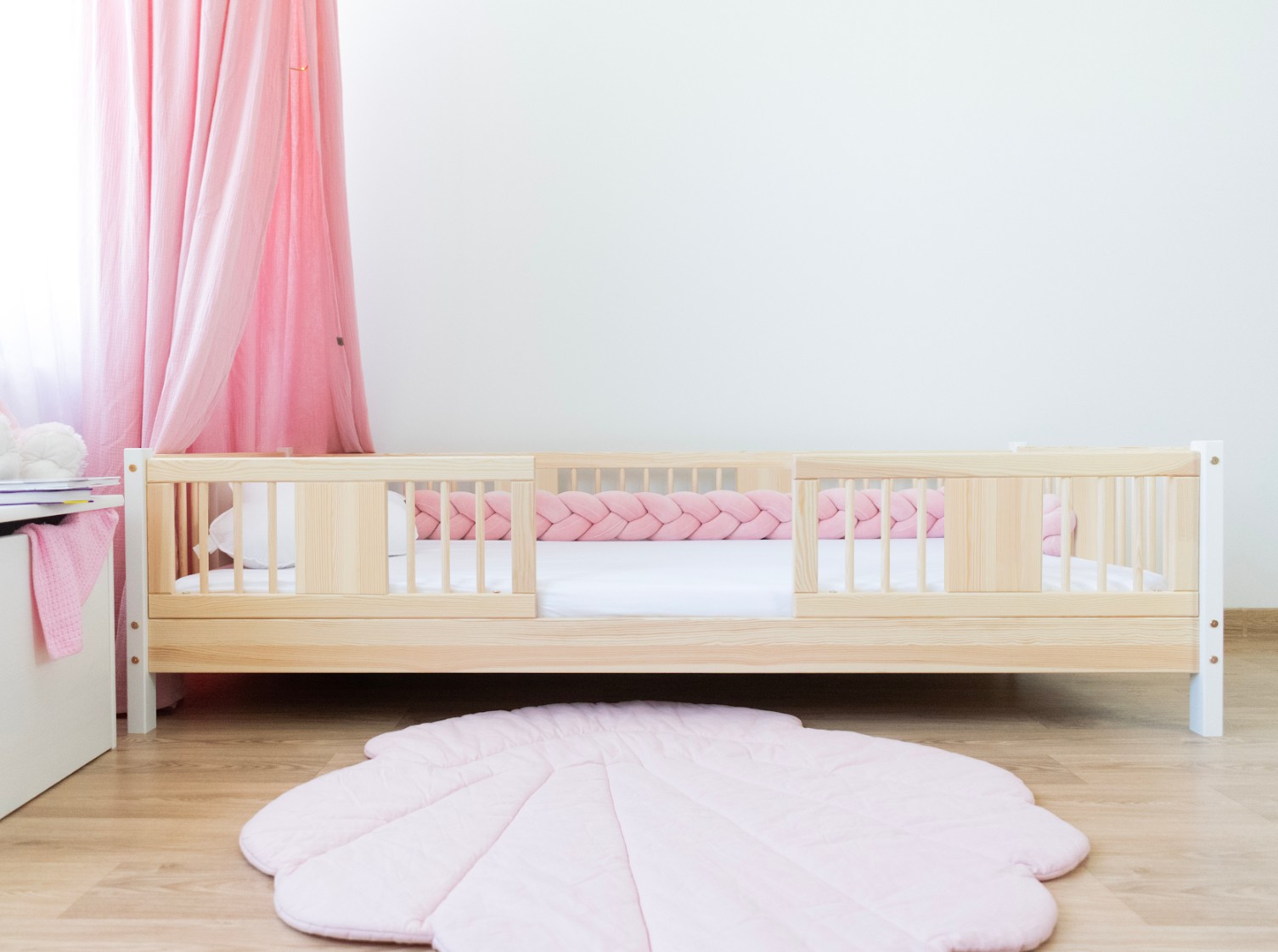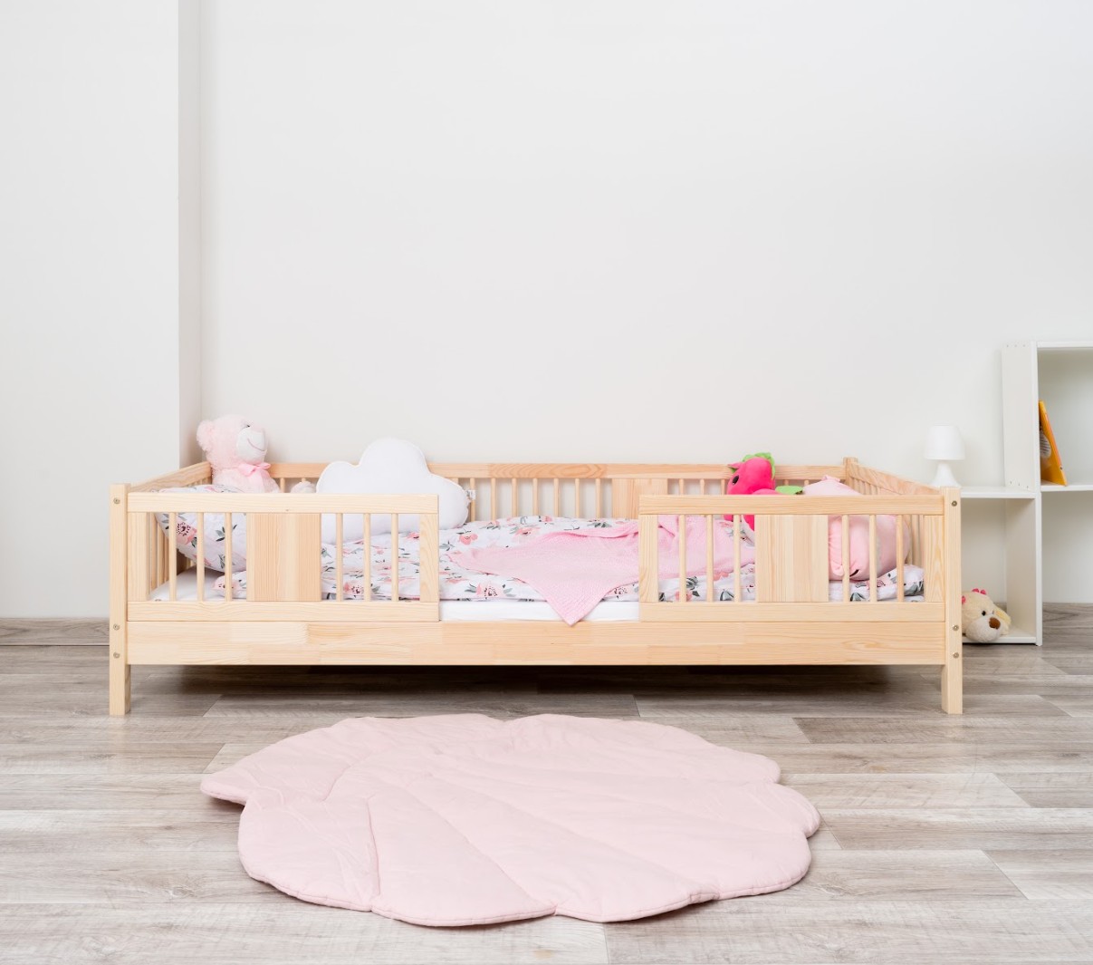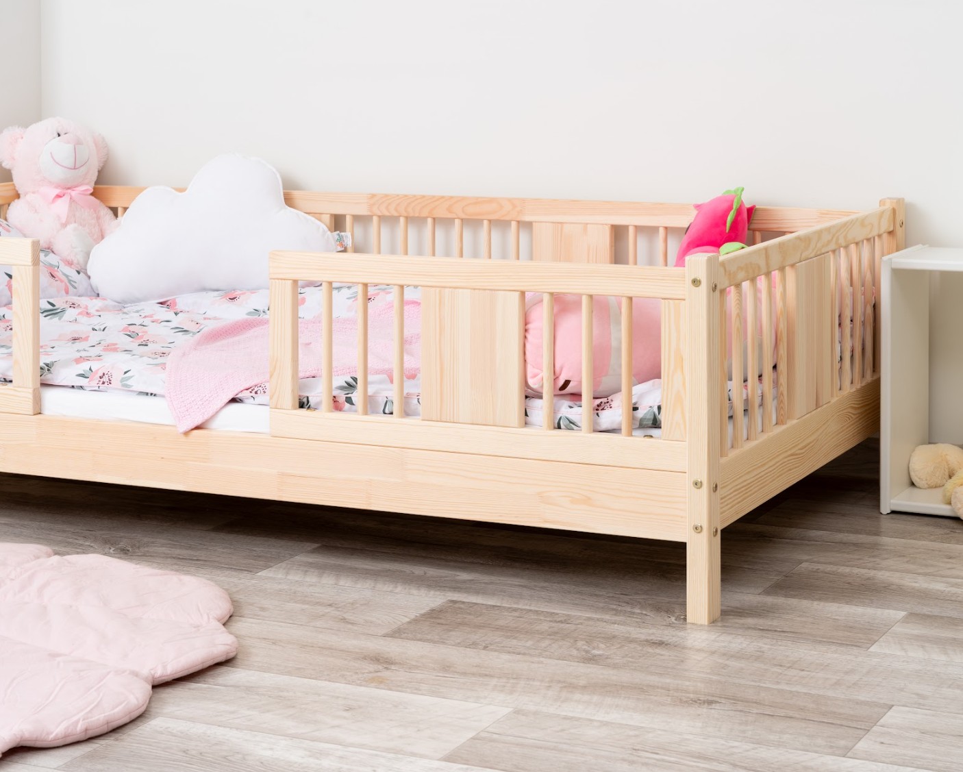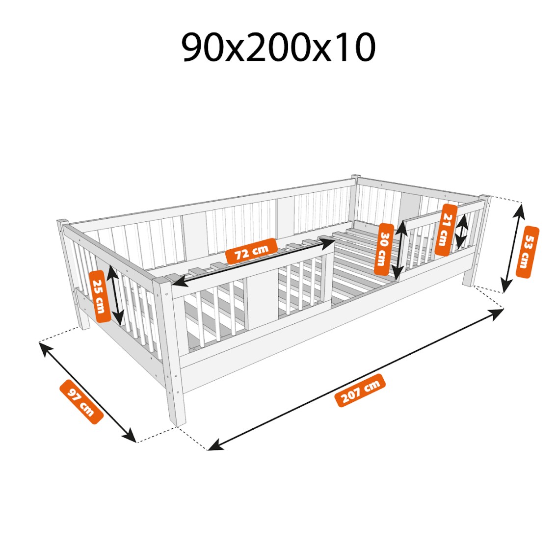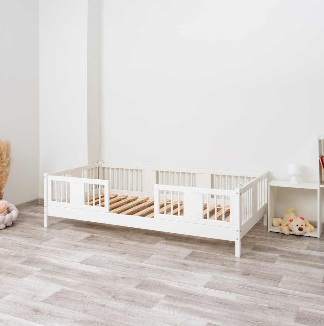 LUNA 10 cm je drevená detská posteľ s 10 cm zvýšeným roštom, ktorá kombinuje funkčnosť, estetiku a bezpečnosť. Jej decentný tvar so zaoblenými lamelami a prírodnými materiálmi z nej robí ideálnu voľbu pre škandinávsky štýl a izby inšpirované Montessori. Je to perfektná voľba pre rodičov, ktorí hľadajú prvú posteľ pre dieťa, ktorá zaistí pohodlný spánok a krásny interiér. Posteľ LUNA 10 je vyrobená výhradne z prírodného borovicového dreva, známeho pre svoju odolnosť a hrejivý, príjemný vzhľad. Všetky prvky sú hladko brúsené a zaoblené, čo zaisťuje úplnú bezpečnosť aj pre najmenšie deti. Povrchová úprava je prevedená ekologickými farbami na vodnej báze, ktoré spĺňajú európsku normu EN 71-3 – bez zápachu, toxínov a škodlivých látok. Vďaka tomu je posteľ LUNA 10 ideálna do izieb alergikov alebo dojčiat. Posteľ ponúkame aj vo verzii bez povrchových úprav - nelakované drevo. Vďaka tomu sa dá ľahko prispôsobiť - jej vzhľad môžete upraviť morením, lakovaním alebo maľovaním podľa vlastného uváženia. Každý prvok rámu bol precízne vyleštený a hrany sú jemne zaoblené, aby bolo zaistené maximálne pohodlie a bezpečnosť. Bezpečnostné zábrany pri vstupe do postele sú odnímateľné.